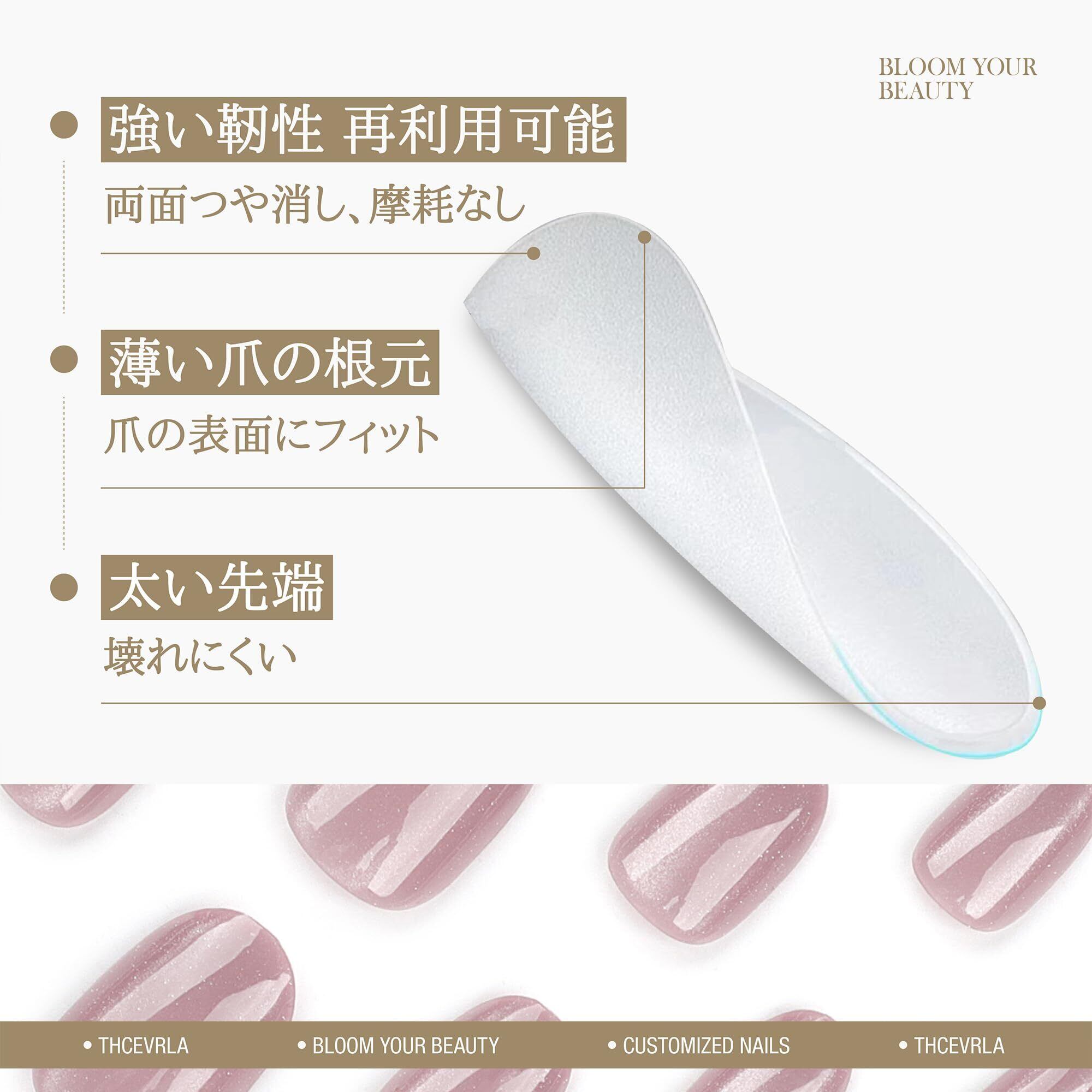【もらえるもの】ネイルチップ(24個)、両面テープ、クリーニングワイプ、木製スティック、ファイル。 使用するツールはすべて同梱されており、受け取ってすぐに使用できます。