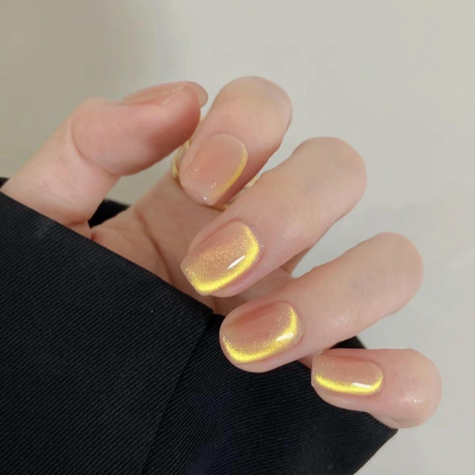 ネイルチップ C形キャッツアイ ゴールドグラデーション ショートネイルチップ 光沢 猫 手作り 秋と冬 ネイルチップ10枚(#01,M)