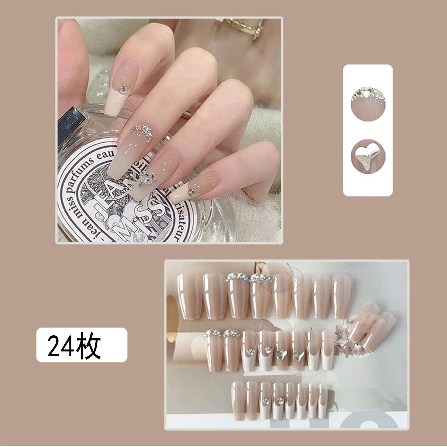 XUZOOネイルチップ 付け爪 短め 長め かわいい クリスマスネイルチップ おしゃれ 人気 シンプル つけ爪 クリスタル3D爪 手用 付け爪 シンプル ネイルシール つけ爪 ネイルツール 両面テープ付き 24枚 (ハートダイヤモンド入り)