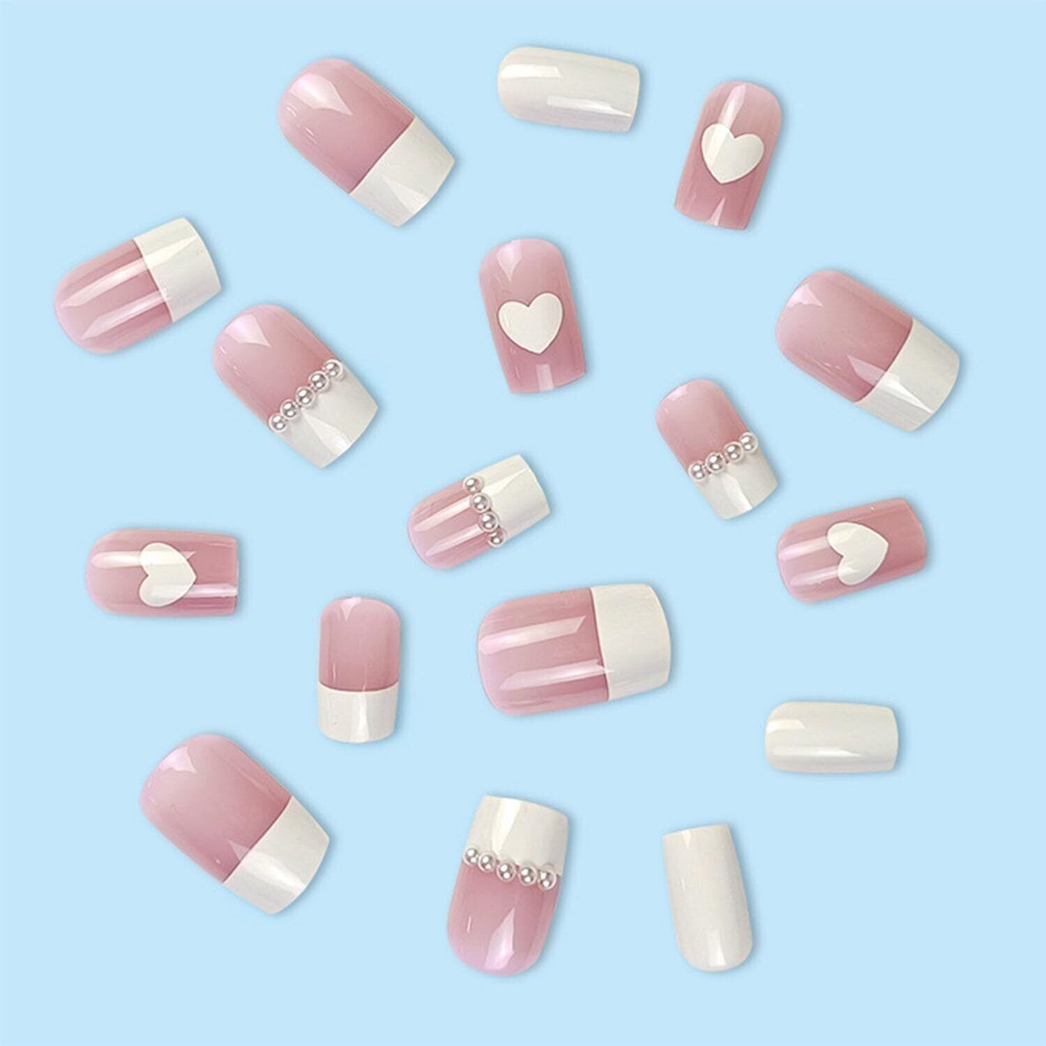 「ネイルチップ 3d型」XUZOO 24枚 ネイルチップ 付け爪 3D爪 立体的 短め 長め かわいい おしゃれ 人気 ネイルチップ ネイルシール つけ爪 ネイルツール 両面テープ付き (ハートとパール入り)