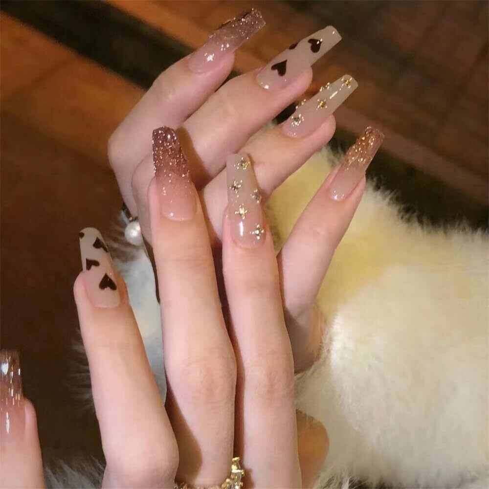 【特価セール】キラキラハート ネイルチップ 24枚 ショート 付け爪 秋冬デザイン 優雅ネイル かわいい シンプル 繰り返し使える 成人式 新年 入学式 卒業式 日常生活 ネイルチップ 人気 花嫁ネイル 光沢 レディース 両面テープ48個付き 標準