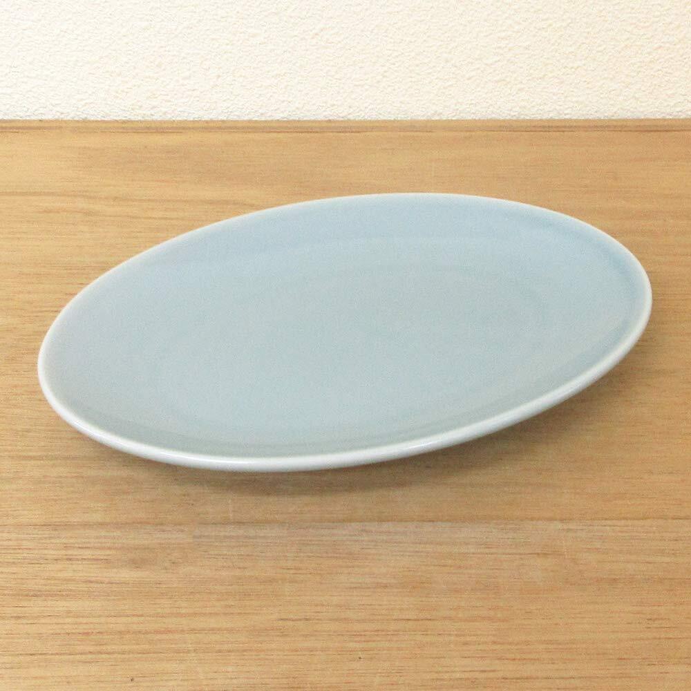 皿 21cm楕円皿 8インチプラター ぎょうざ皿 青磁 青彩 業務用 美濃焼