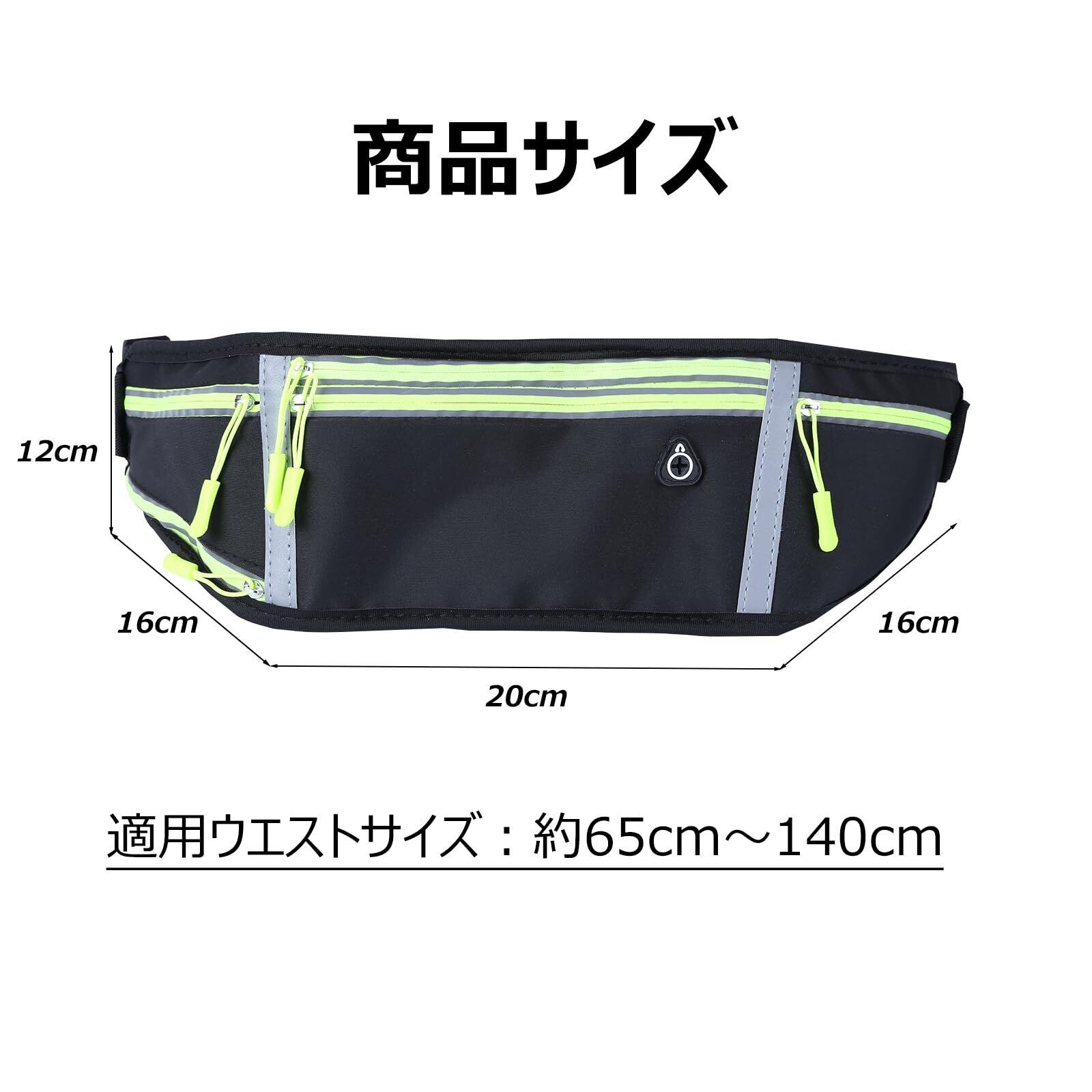 【在庫処分】ランニングポーチ マラソン ポーチ 軽量 揺れない スマホ対応 防水 防汗 大容量 4ポケット 水筒ポーチ イヤホンホール 反射材付き おしゃれ ベルト無段階調整可能 ペットボトル収納可能 夜間活動 ジョギング ウォーキング 登山 釣り メンズ レディース (ブラック)