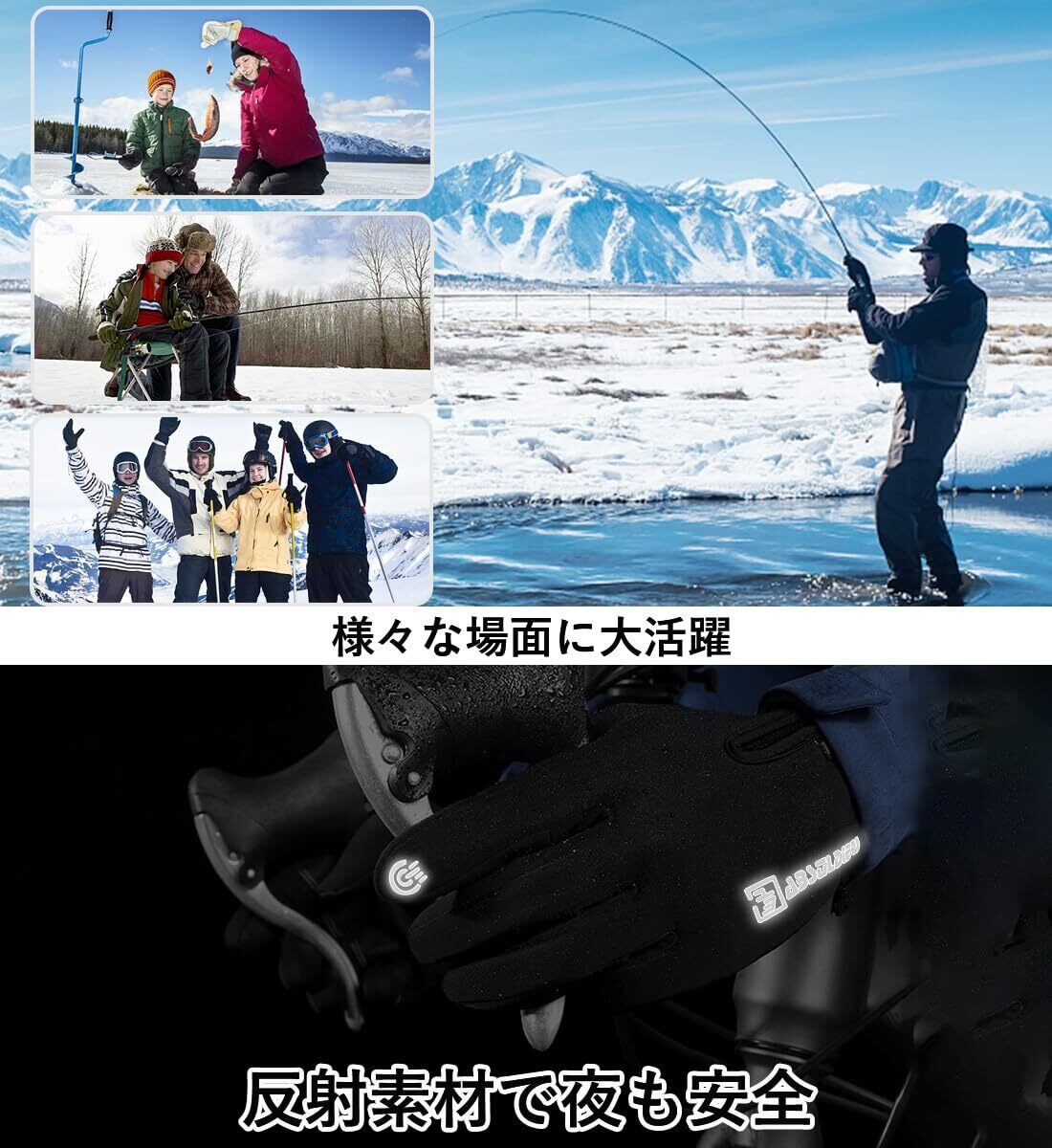【暖かい裏起毛・防寒防風】防寒グローブは保温性に優れた複合ポリエステルを素材に、、柔らかい裏起毛、熱を閉じ込めやすく、肌に優しく快適な着心地を実現している防寒手袋です。更に、長めの丈で、袖口との隙間を作らない、手首からの冷気の侵入を防ぎ、寒い冬でもポカポカな防寒手袋で、着け心地のよくて保温性・防寒性・通気性を兼ね備えたスポーツグローブやサイクリンググローブとしても素晴らしいです。
