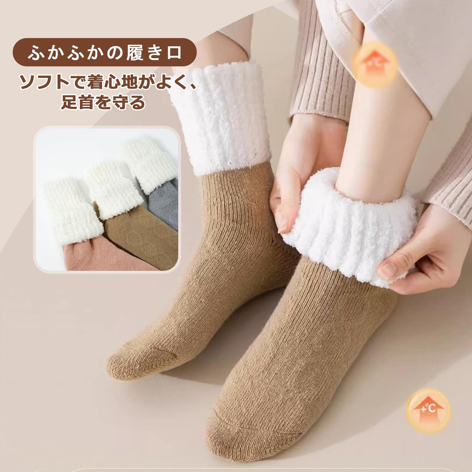 【締め付けない】:高弾力の素材を採用し、丈夫でたるみにくいし、優しく足を包まれて、締め付け感が少ない 保温靴下です。レディース冬靴下の密度は高く、摩擦を効果に軽減できます。さらりとした履き心地で、一日履いでもむくま、疲れが溜めないです。履き口からつま先まで全部ふわふわとして、まるで毛布に包まれているような履き心地、足元がぽかぽかになって幸せな温もりを楽しめます。