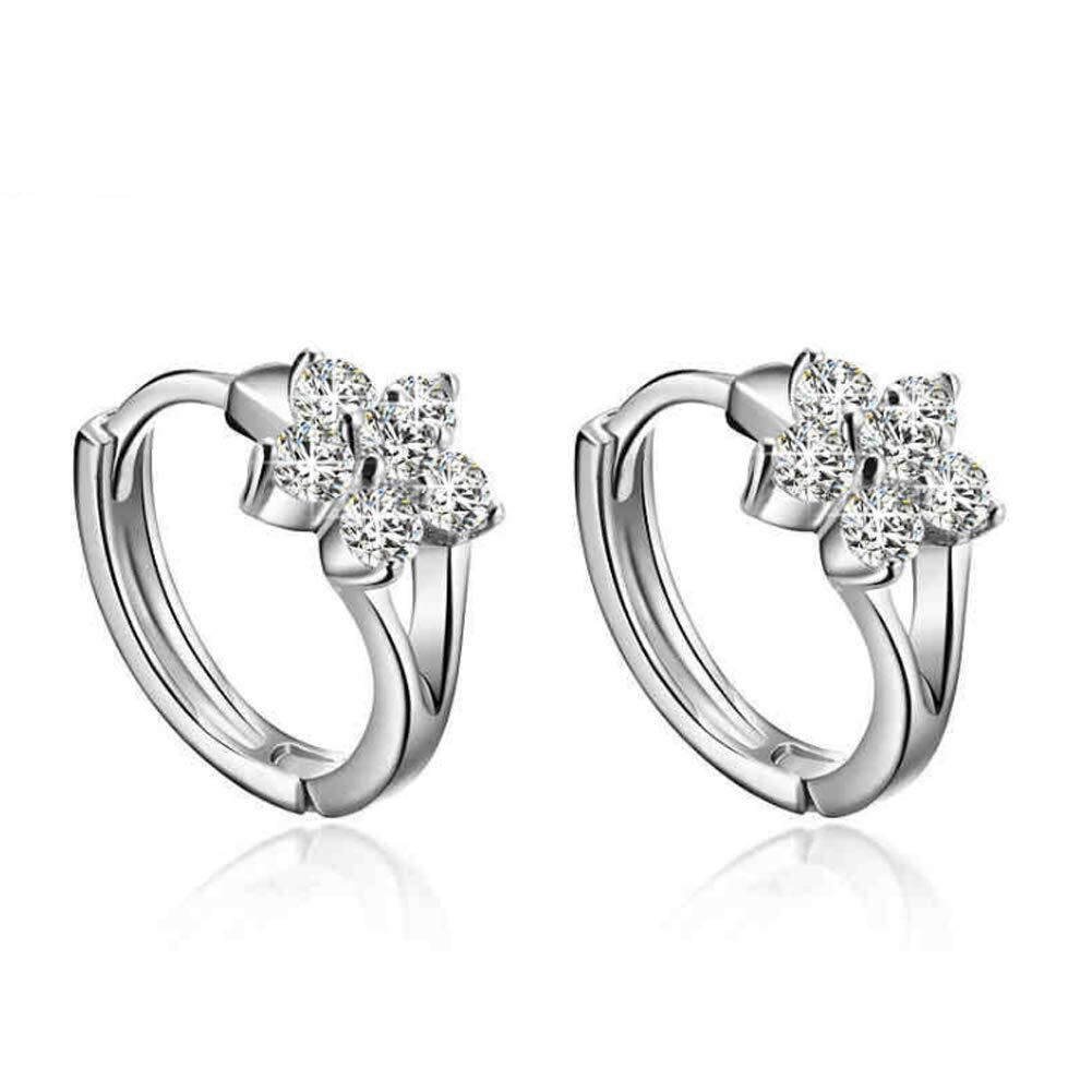 【2022最新】[アイドルコ] IDOLCO スターリングシルバー SILVER 925 キラキラ CZ キュービックジルコニア エレガント プチ フラワー フープ ピアス レディース (フラワーフープピアス)