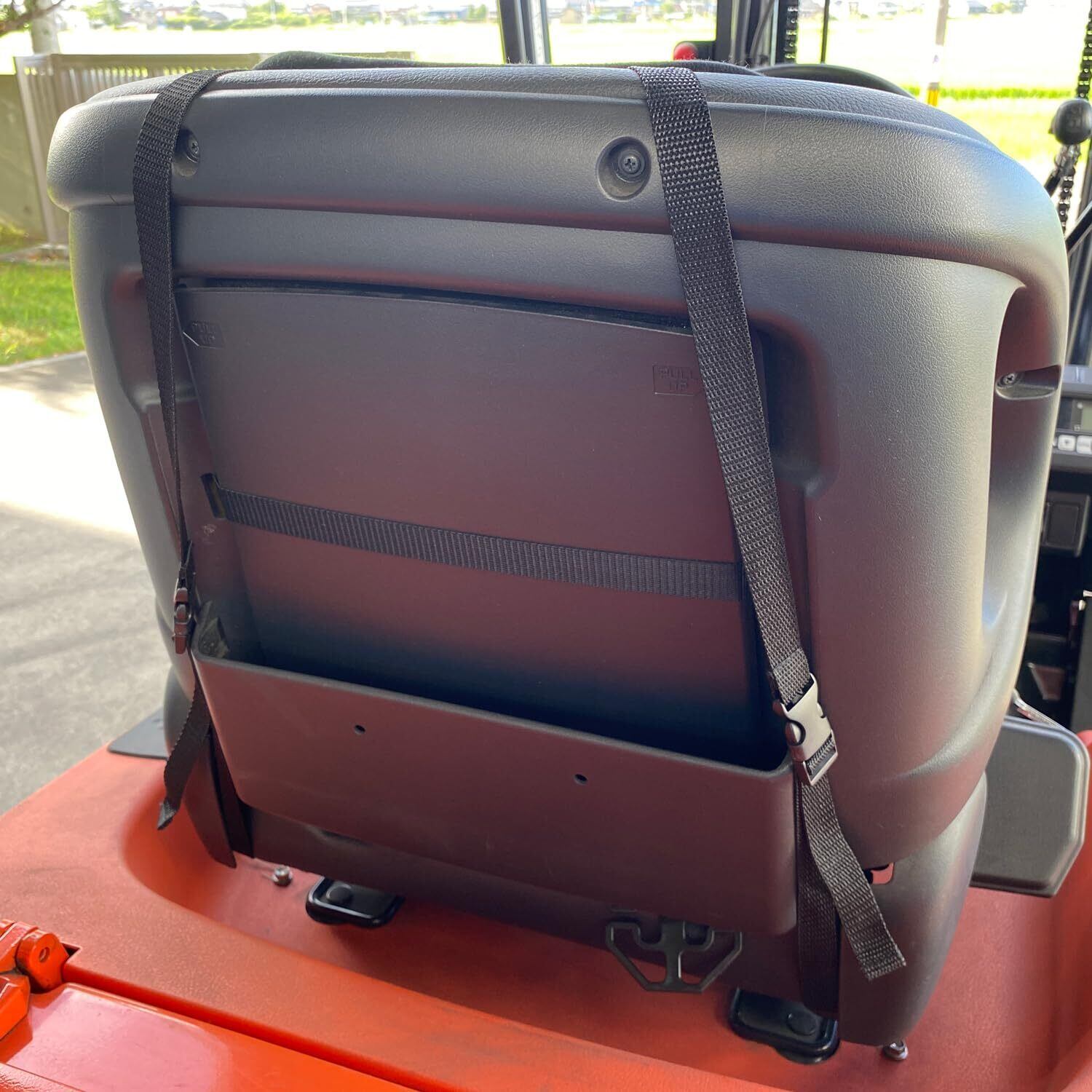 冬場の寒さを和らげる電源不要のフォークリフト用背もたれ付きあったかクッション。体温であったか保温。
