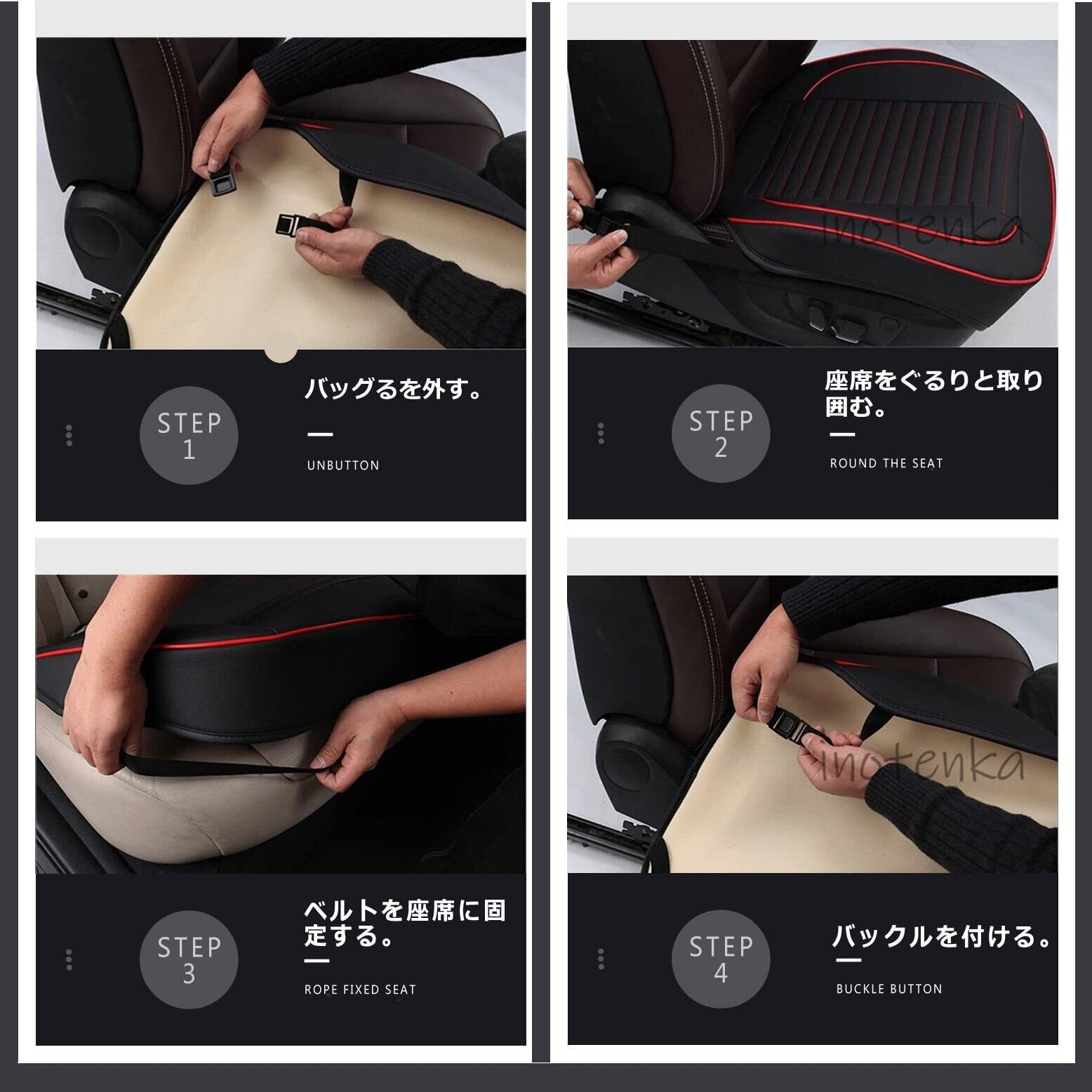 [inotenka] 車用 シートカバー セット 座布団 クッション マット 通気 滑り止め 汎用 (約55cm*55cm ブラック) (前席用2枚ベージュ, 約55cm*55cm)