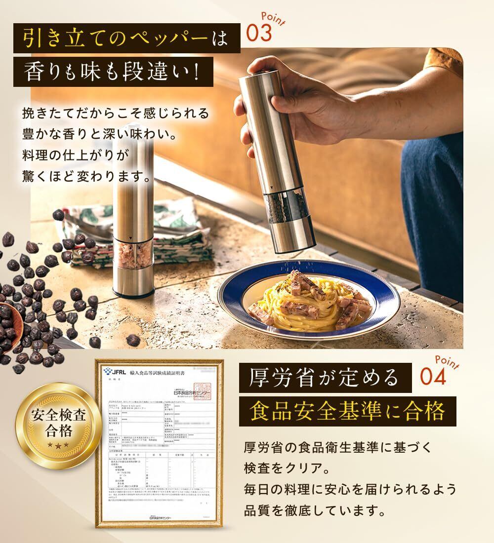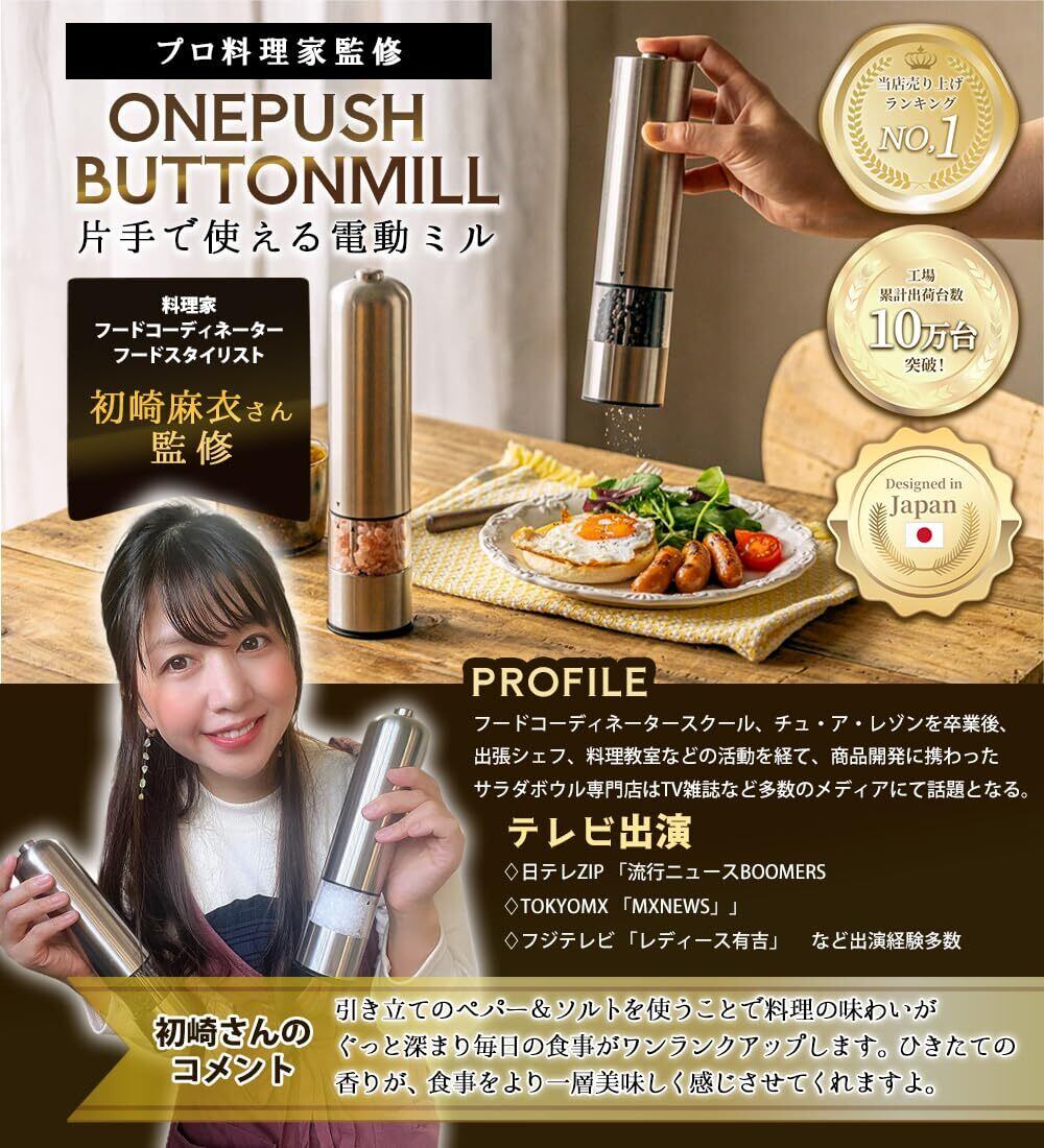 【特価セール】【日テレZIP出演!! プロ料理家監修】ONE PUSH BUTTON MILLペッパーミル 電動 ソルトミル 電動ミル スパイス ペッパー 岩塩 黒胡椒 コショウ ラウンダ (2)