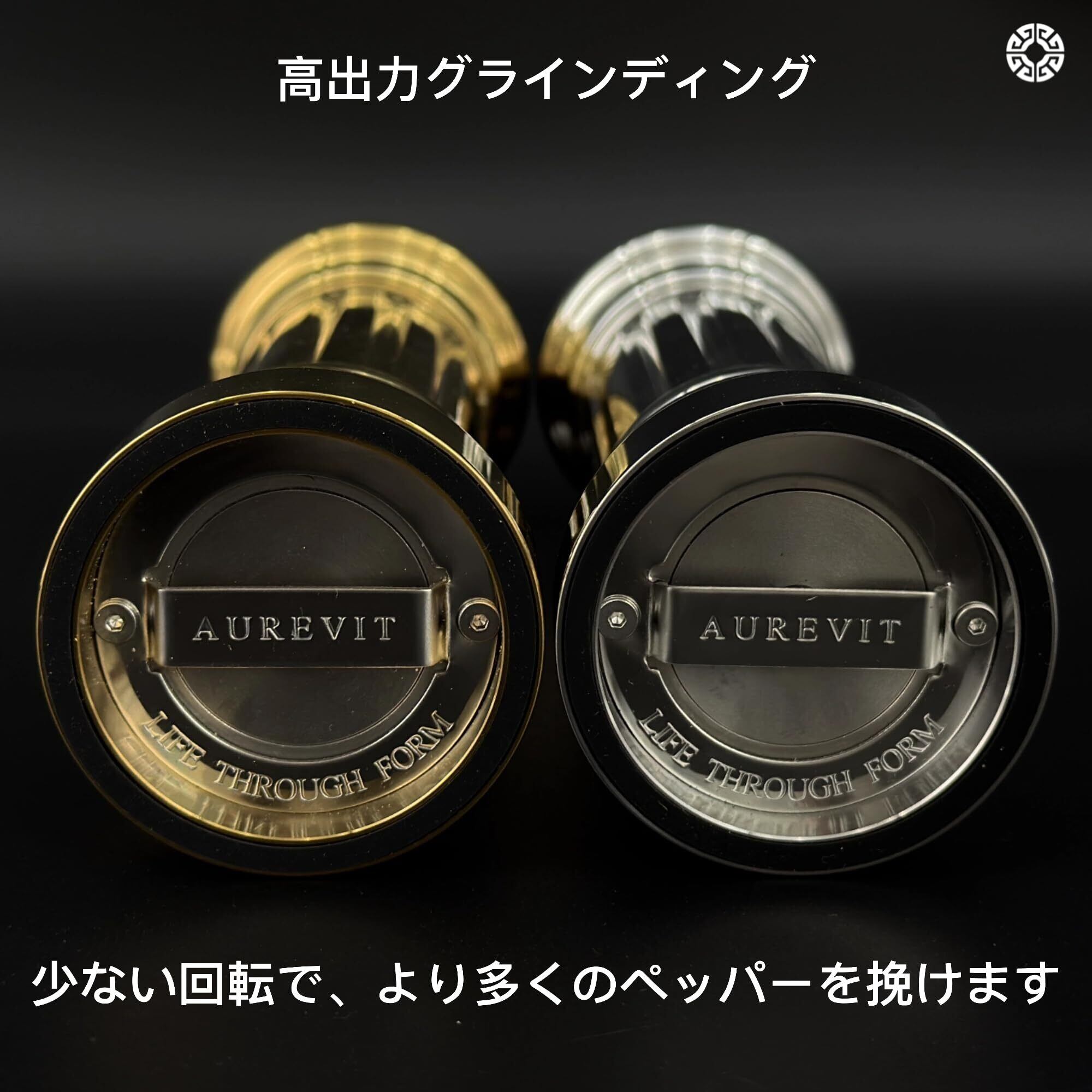 ペッパーミル 手動 ステンレス製ミル機構 高出力 こしょう ミル オールメタル構造 粗さ調整可能 再充填式 鏡面仕上げ(ゴールド)