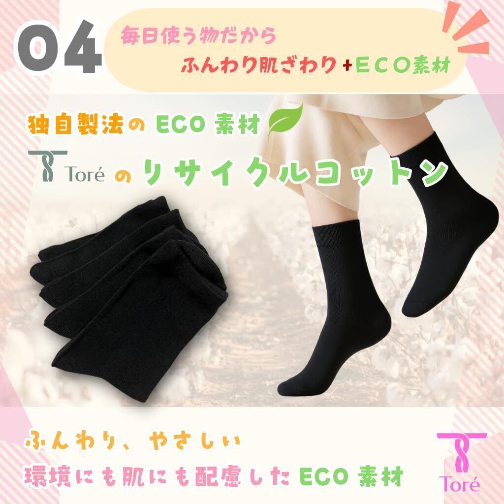 [Toré] 【トレ】 靴下 レディース クルーソックス 綿 抗菌消臭 丈長め 中厚生地 耐久性 5足セット 10足セット 22-25cm 黒 ブラック