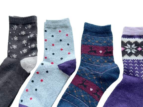 ソックス レディース 冬 秋 あったか 厚手 毛混 おしゃれ 靴下 レディース かわいい カラフル 防寒 4足セット(柄はお任せ)