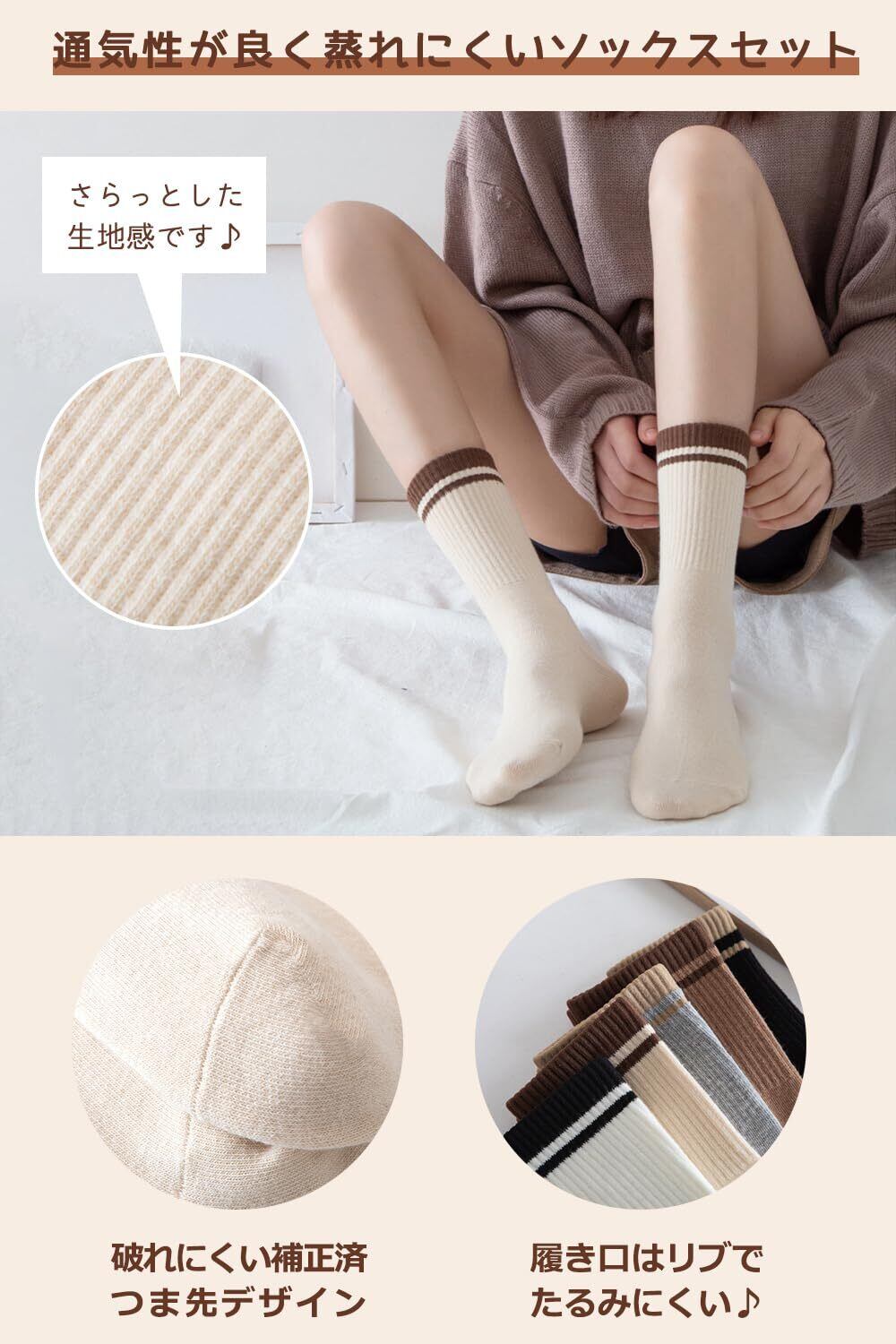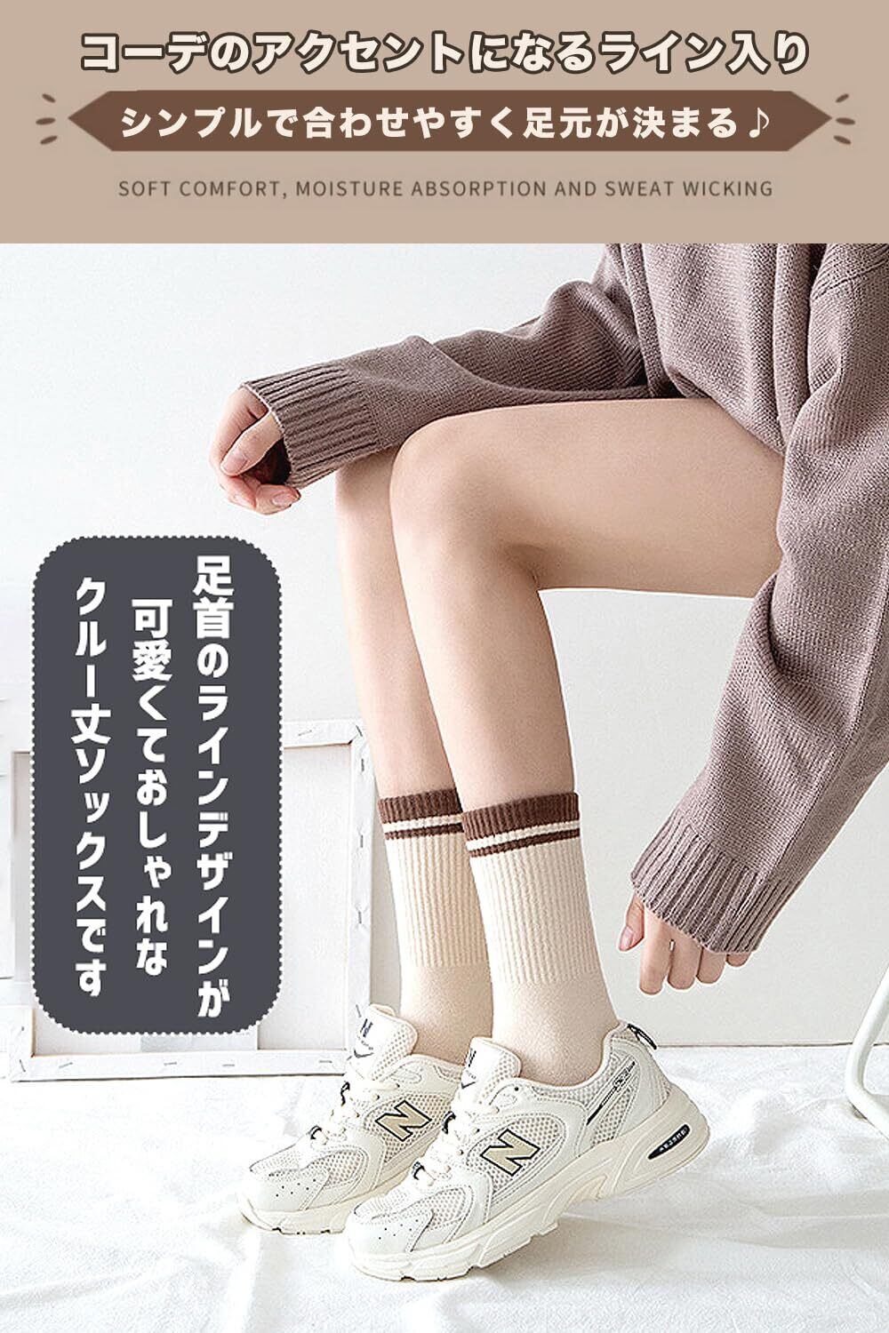 [back under] 靴下 レディース ソックス 5足 10足 セット おしゃれ 可愛い ライン クルー丈 女性 春 夏 秋 冬 オールシーズン クルーソックス