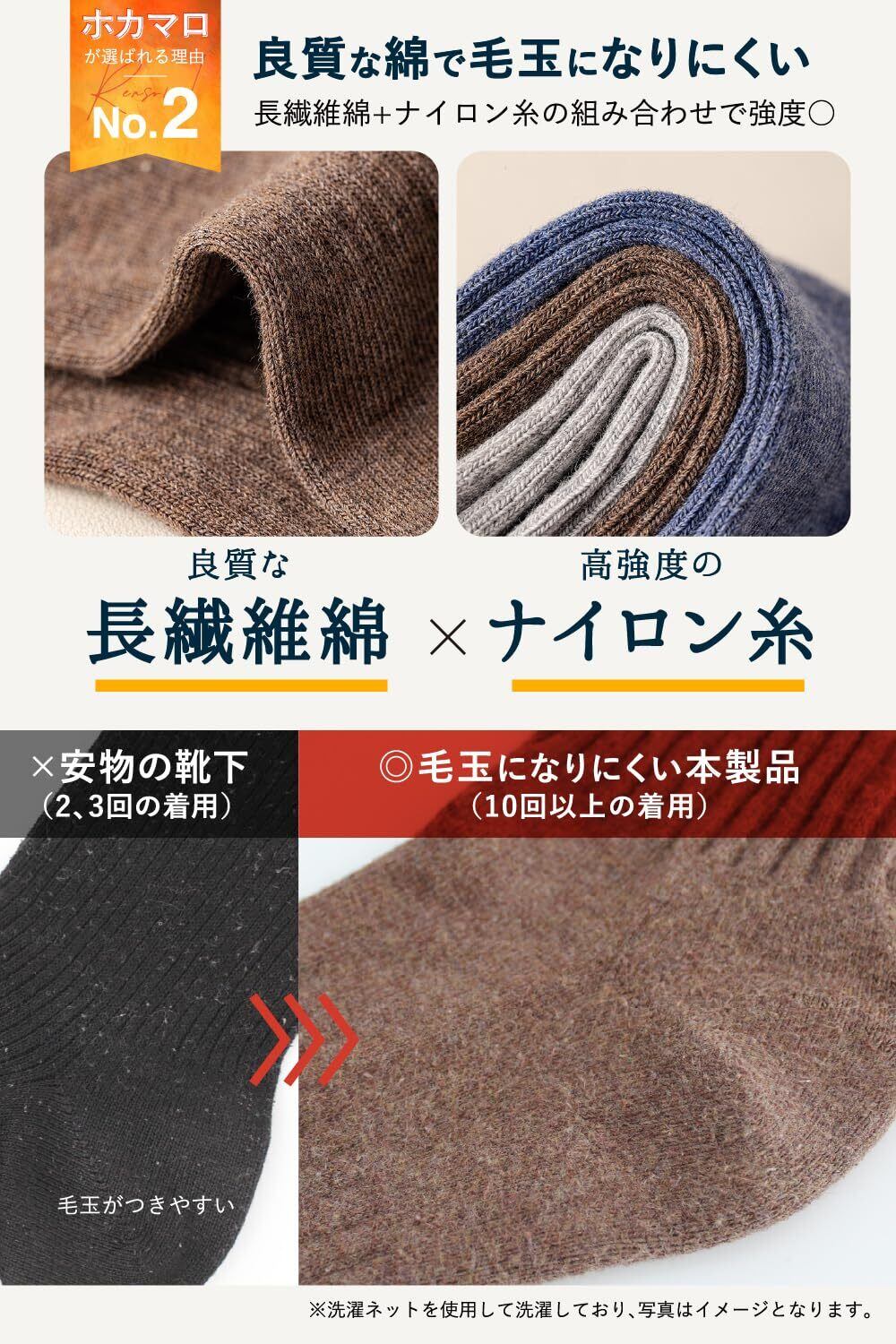 【毛玉になりにくい綿がある!?】 長繊維綿を使用した厚手の靴下は、毛玉になりにくく上品な見た目をキープしながら、冬でもあったかい履き心地が長続きする、寒い季節にぴったりのクルー丈のあったか靴下です。 【”フカフカ”の履き心地】 足底パイル仕様でふかふかの厚手靴下は、履いた瞬間から包み込まれるようにあったかく、寒い冬の足元を優しく守る、毎日履きたくなる暖かいハーフ丈の綿パイルソックス。ゆったりとした口ゴムの設計で、長時間履いてもストレスフリーな履き心地。 【抗菌防臭加工】 抗菌防臭加工を施した厚手の靴下は、冬でもムレにくく清潔に保ちながら、暖かい空気を逃がさずポカポカが続く、快適であったかい靴下です。 【優れた吸水速乾性で蒸れにくい】 上質な綿素材を高混率で使用した厚手の靴下は、吸水速乾性に優れ、汗をかいてもサラッと快適、冬でもずっと暖かい履き心地が続くあったかい靴下です。
