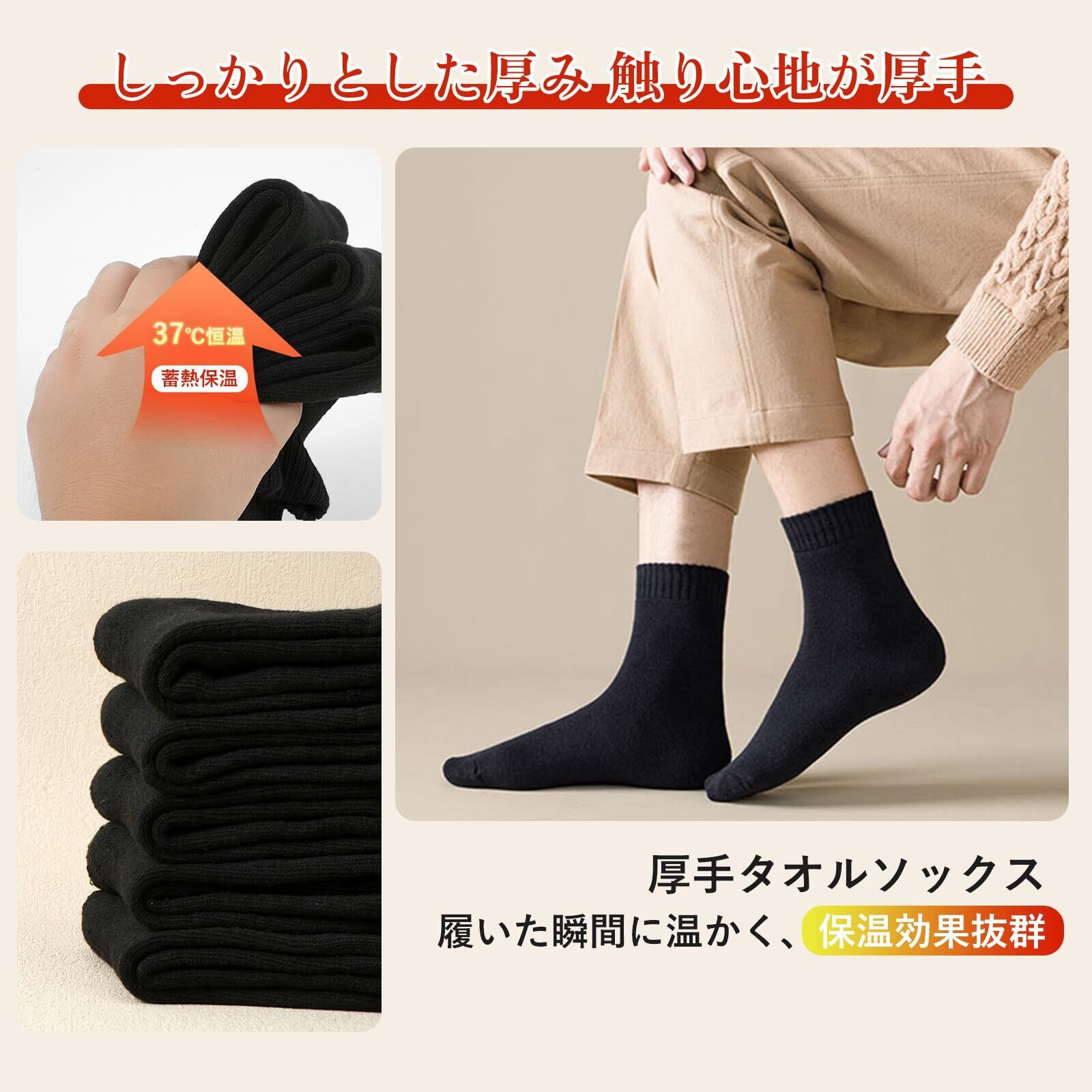 【新着商品】[DAMILY] 靴下 メンズ 冬 暖かい 黒 スポーツソックス あったか靴下 保温 締め付けず 厚手ソックス 男性用 耐久性 吸汗速乾 カジュアル アウトドア 登山 5足セット 24-28cm