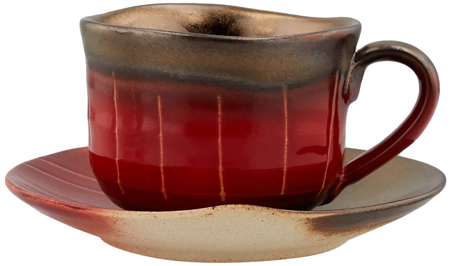 【人気商品】マルヨシ陶器 萬古焼 コーヒーC/S 金彩十草 赤 M0976