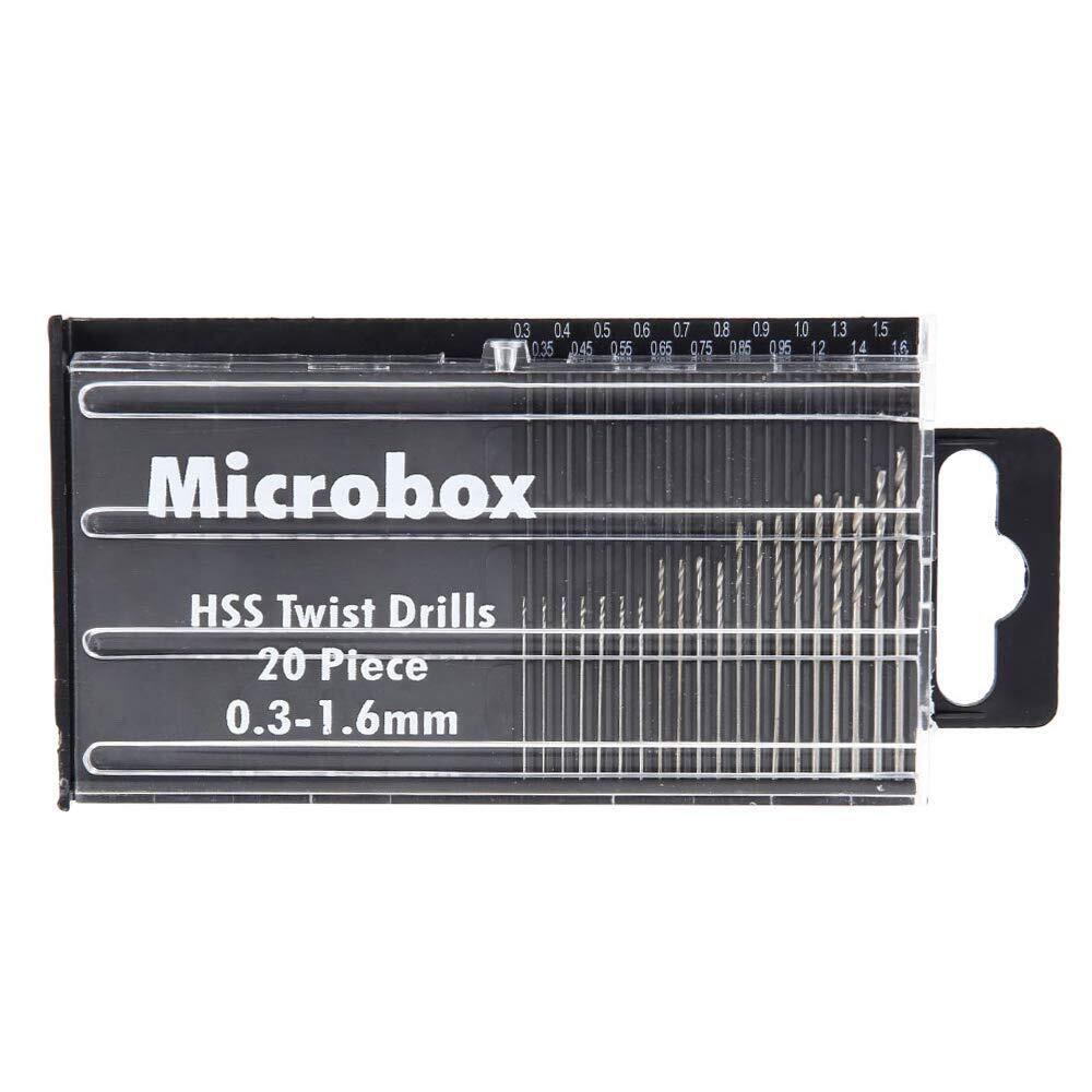 Bestgle極細マイクロドリル刃セット0.3~1.6mm 超硬ドリル 精密ドリル HSS 鋼 付け替え可能 付け替えドリル 20本組 PCB彫刻ドリル DIY 木工 穴あけ用 ミニルーター用ビットセット