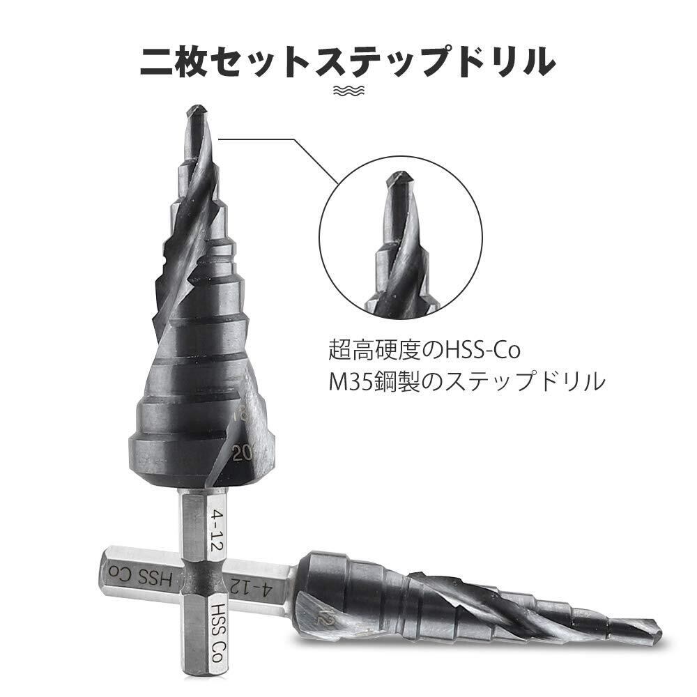 【特価商品】ステップドリル 改進版 ONUEMP 六角轴 2本セット HSS-Co M35 超高硬度 4-20mm 9段 4-12mm 9段 チタンコーティング スパイラル hss钢 ドリル 螺旋 六角轴スパイラル 2pcs 穴あけ たけのこドリル