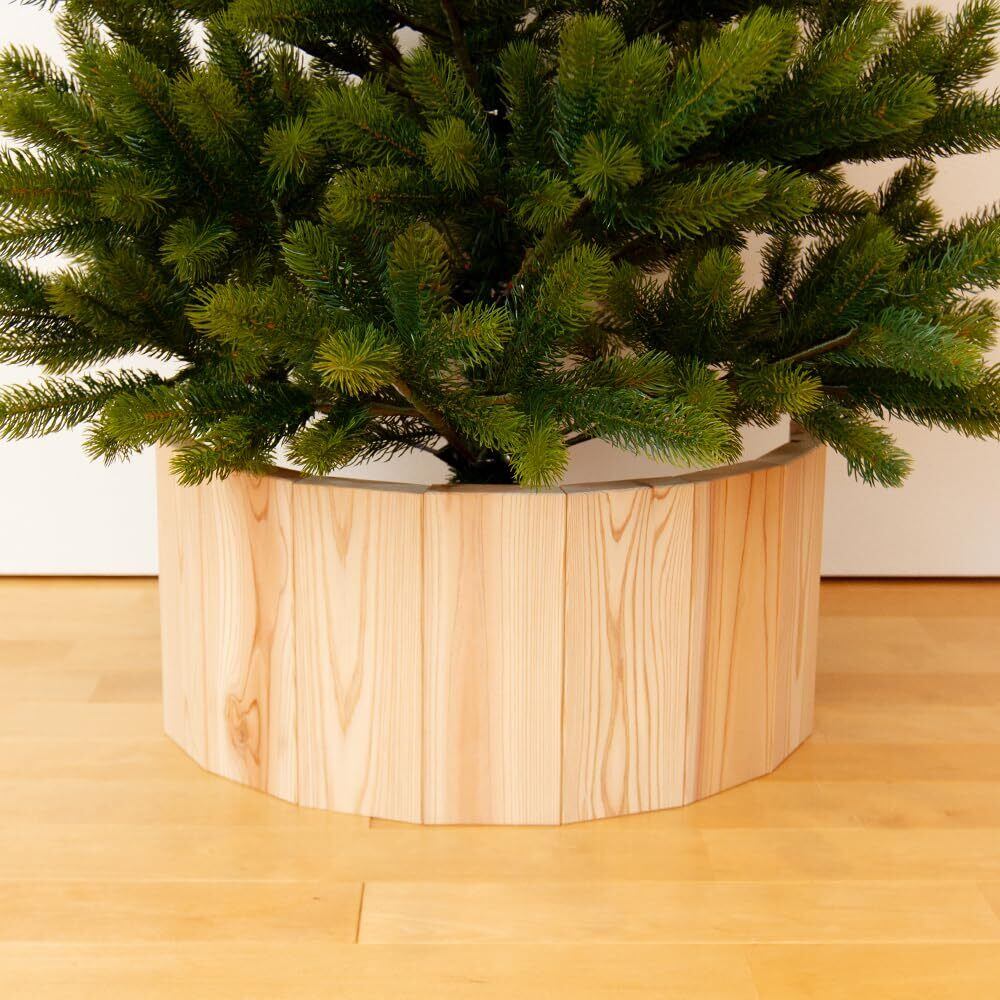 クリスマスツリーの金属スタンド部分を覆い隠すことで、ツリーをより美しく見せることができるフェンス。 台形にカットされた木材にはそれぞれ穴が空いており、それらを強力なゴムコードで繋ぐことでフェンスの幅をフレキシブルに調整できます。 日本の工房で丁寧に作られています。
