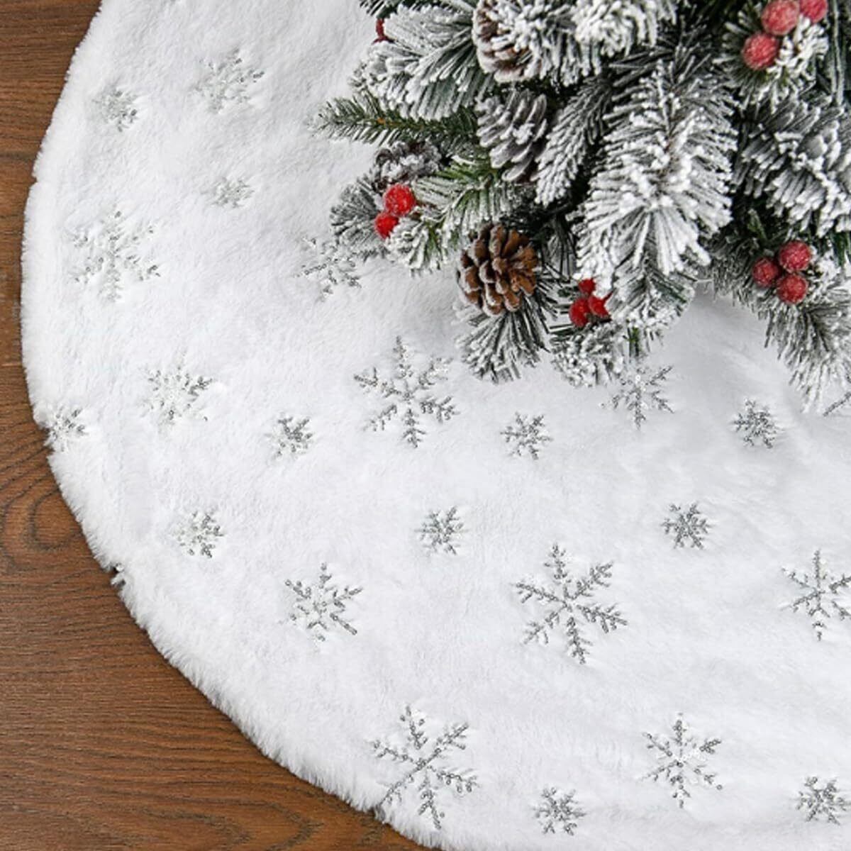 クリスマスツリースカート ツリー 足隠し クリスマス飾り 円形 可愛いツリースカート豪華 ベースカバー オーナメント クリスマスツリー 足元隠し スノーフレーク 屋内屋外飾り クリスマスパーティー オーナメント 雰囲気 クリスマス用品 (刺繡 -90cm)