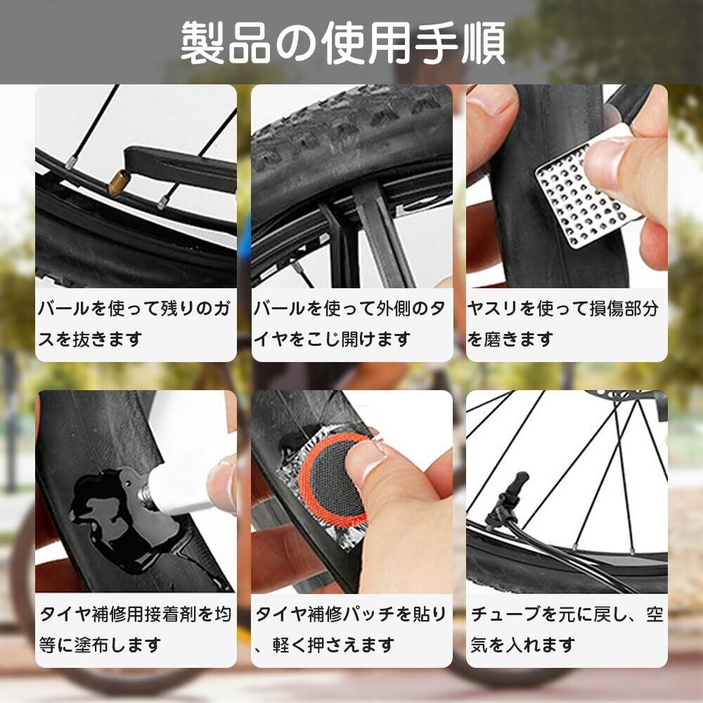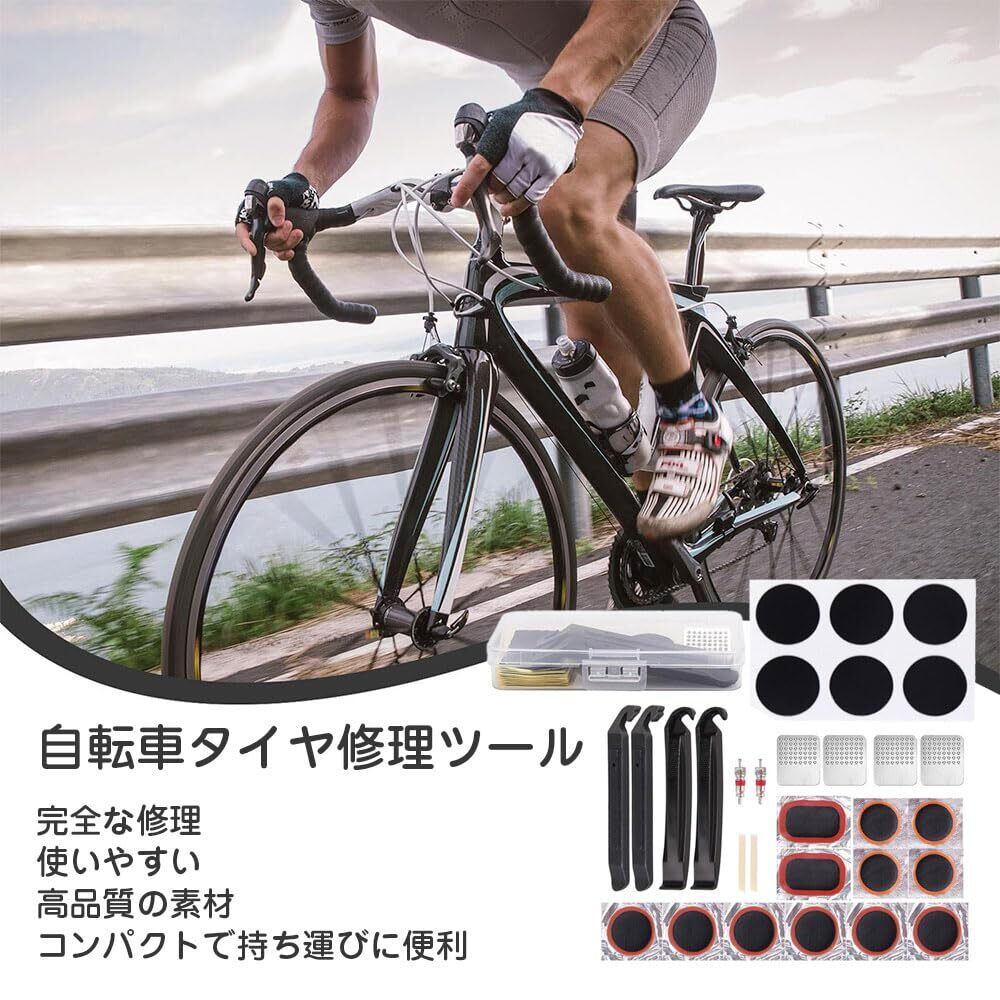 自転車 タイヤ 修理キット 自転車タイヤパッチ 応急用 パンク修理キッ 粘着剤不要 ト 軽量 便利 汎用性 収納ボックス付き