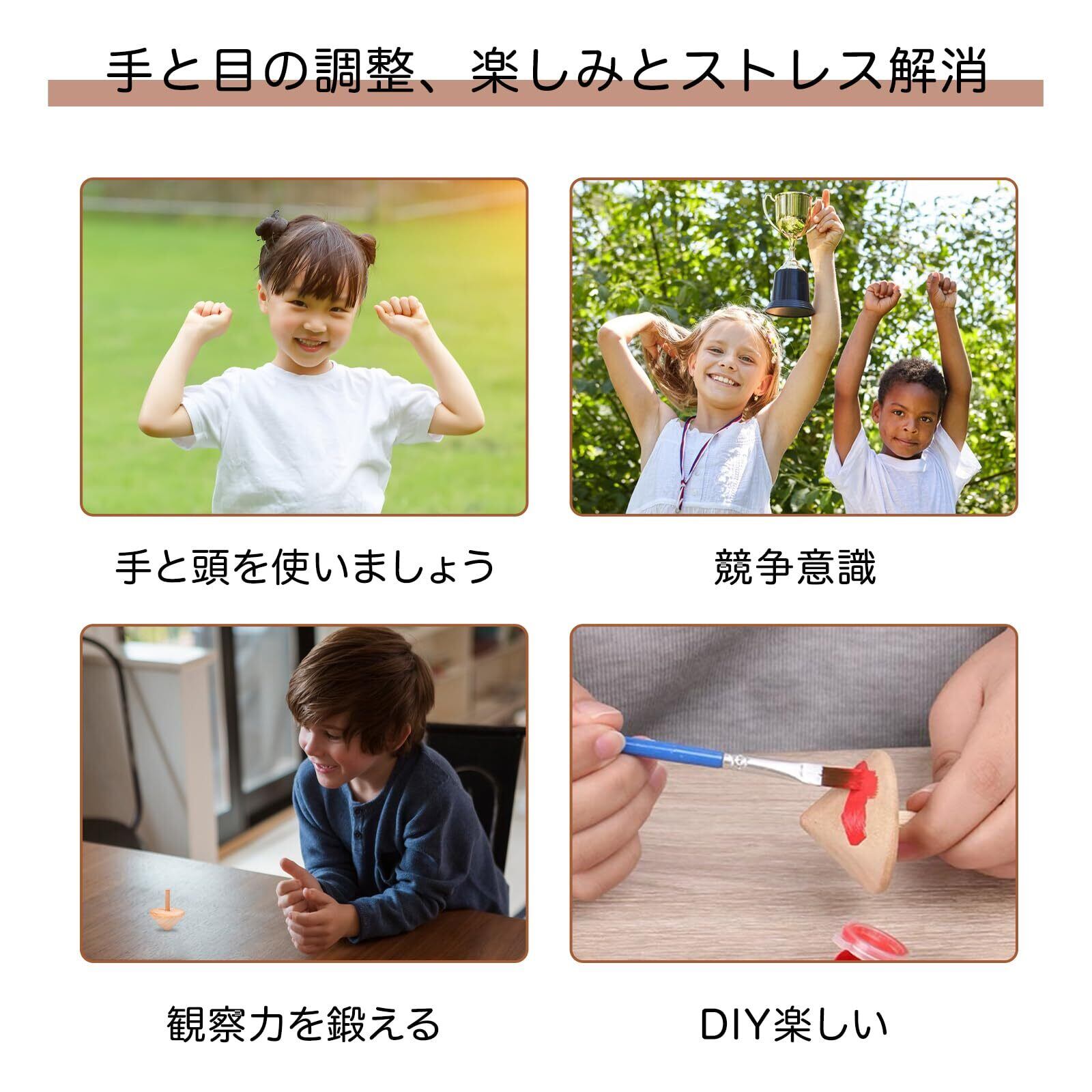 【木製 手回しこま】木製 手回しこまは無着色、こまにペイントして独自のスタイルを作成できます。一緒に自由に創造的に絵を描いたり、色を塗ったりできます。