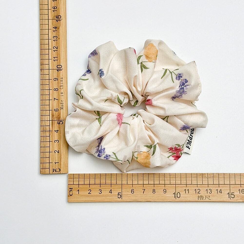 【内容】花柄シュシュ2本;太さ約5cm;直径約13cm。シックな色合いで艶感が綺麗な印象。柔らかくて、光沢のある生地で、ぐっとエレガントな印象に。