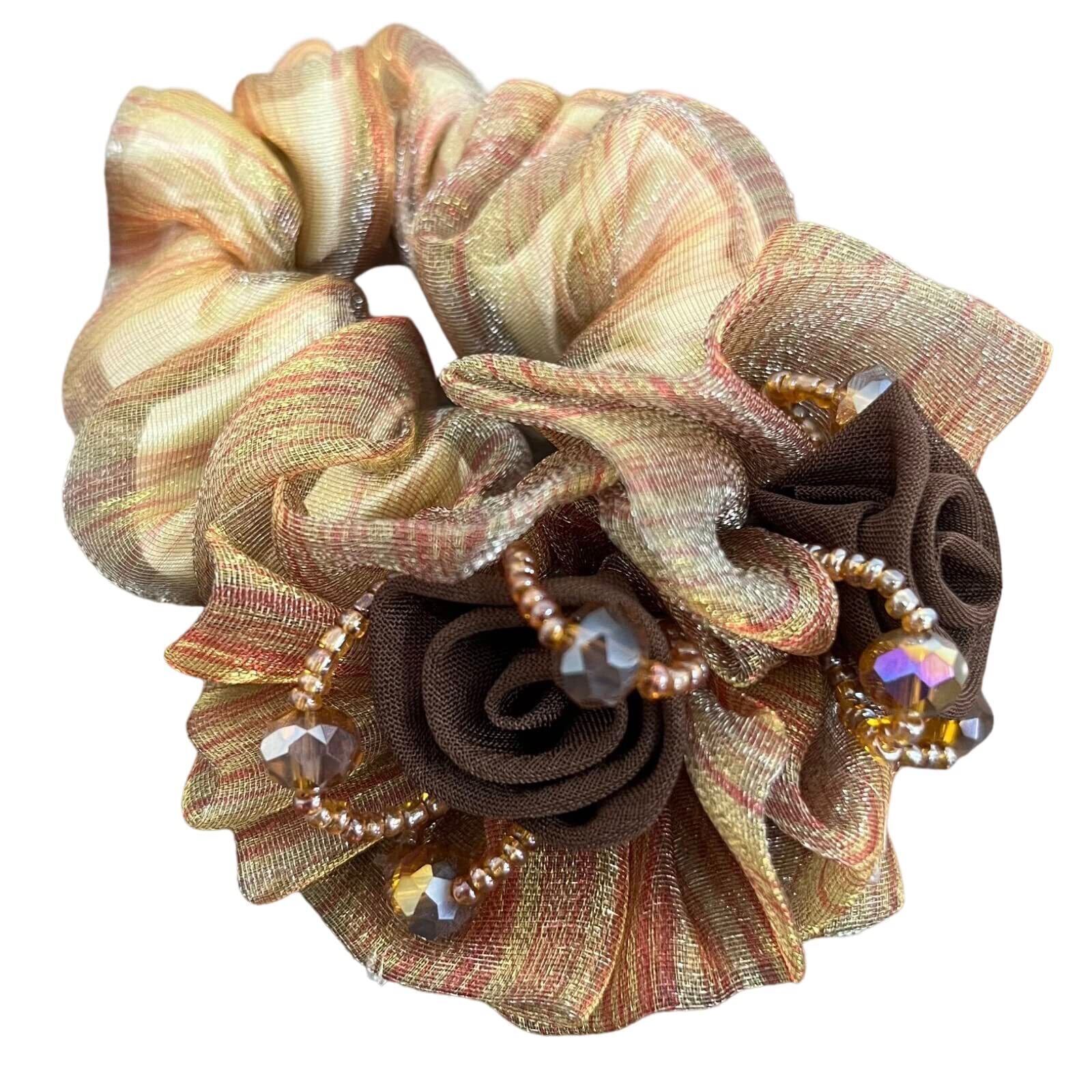 (ADOSSY) シュシュ 大人 オシャレ しっかりとまる ヘアゴム ヘアアクセサリー ふんわり 綺麗 ビーズ お花 (A)