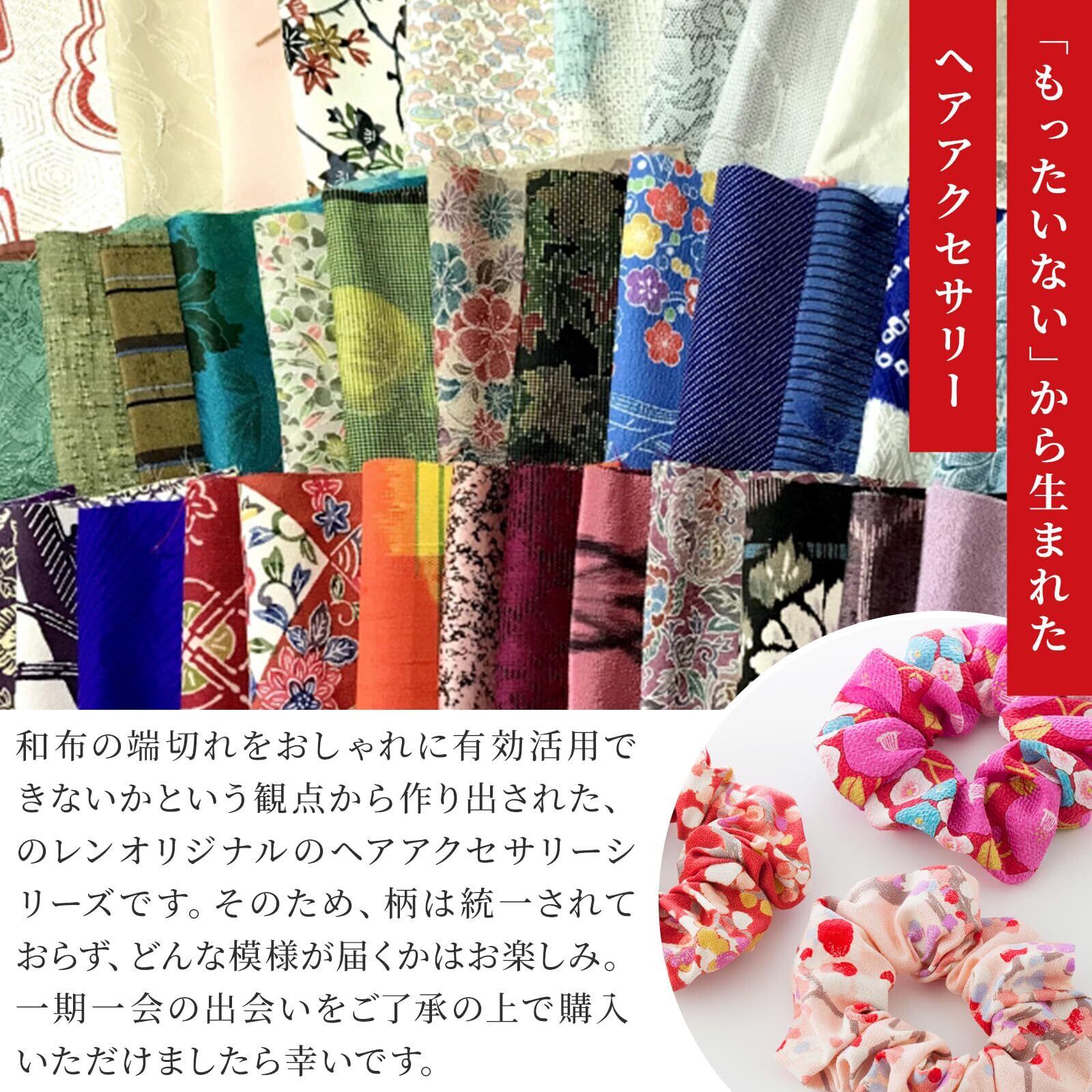 のレン ヘアゴム シュシュ 和柄 (赤/ピンク) 髪ゴム ゴム/日本製 ヘアアクセサリー ヘアアレンジ 和風 シンプル/日本土産 Japanese traditional souvenir レディース 子供 和装小物