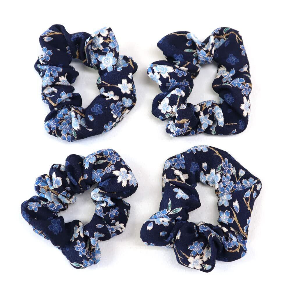 和柄 ちりめん シュシュ 1500-189 (舞桜紺)