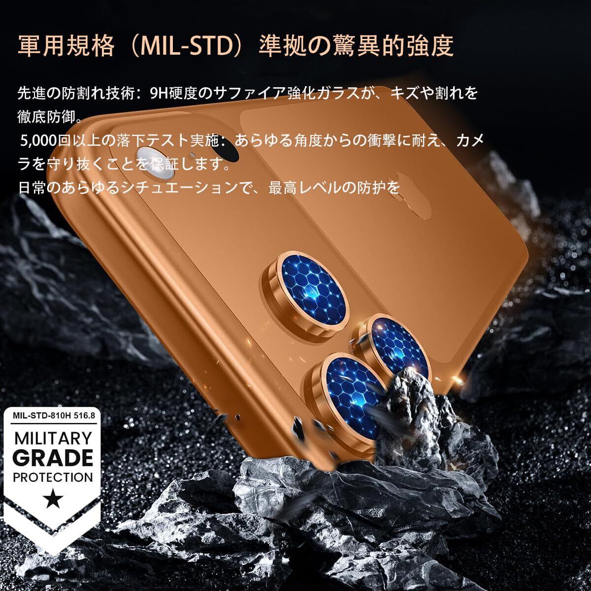 【軍用規格保護】個々のレンズプロテクターは、プレミアム強化ガラスで作られており、日常の硬いものや鋭利なものに対する強力な耐傷性を備え、衝撃性の高い落下からもカメラを安全に保護します