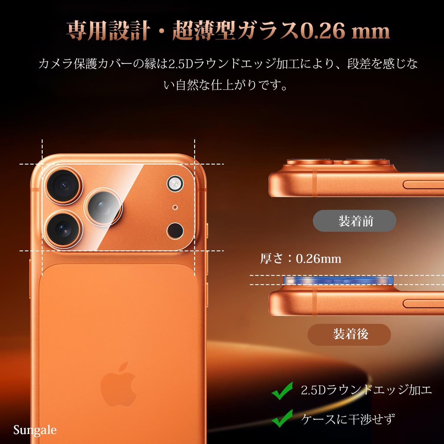 Sungale いPhone17Pro カメラ保護 カメラフィルム iPhone17 Pro カメラ保護 カバー 强化ガラス 黒縁取り 極薄 アイフォン17プロ用カメラレンズ保護カバー 全面保護 3眼レンズ保護 露出オーバー防止 防塵 旭硝子素材製iPhone 17 Pro 対応 カメラフィルム (2枚セット)