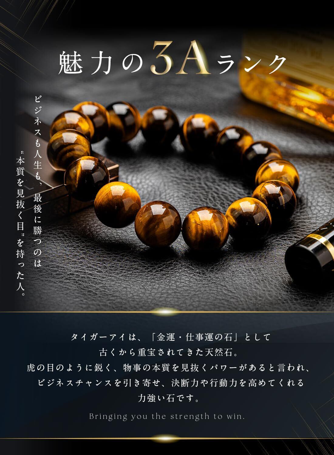 [京珠堂] 上質AAA 金運 勝負運 タイガーアイ 虎目石 ブレスレット パワーストーン (14mm, 16)