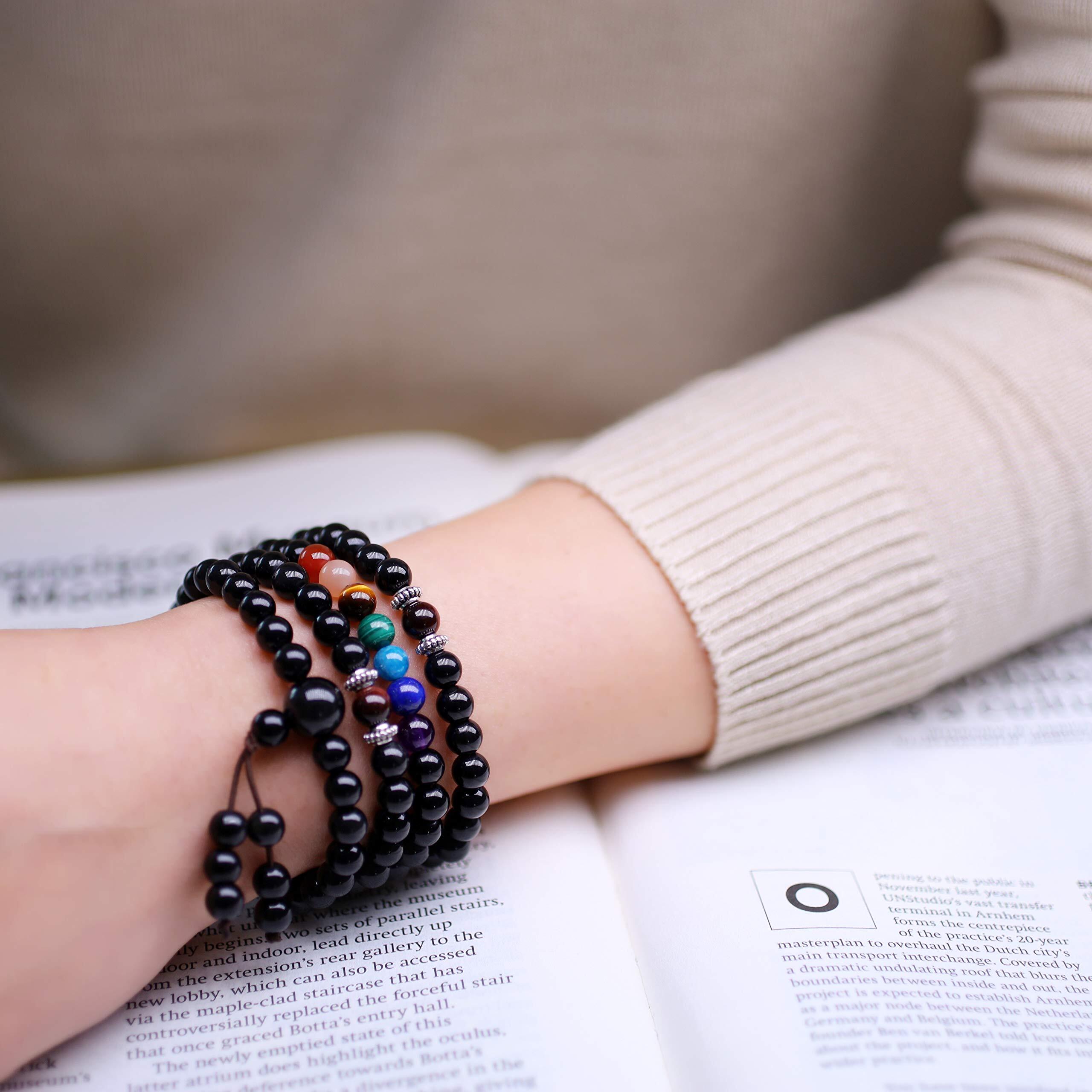 [コアイ]COAI 108玉オブシディアン チャクラ ブレスレット 四連数珠