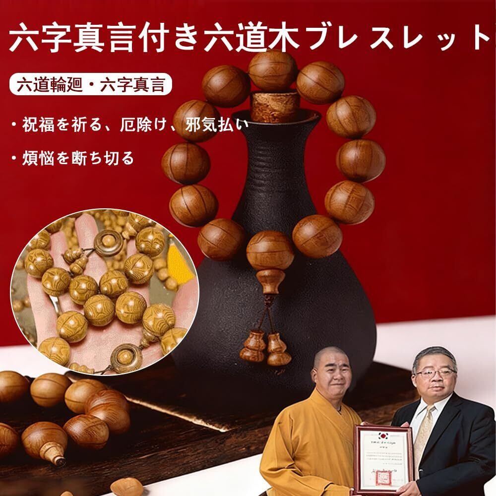 【新春セール】[Arklove] 天然木製数珠ブレスレット ライトブラウン 精工彫り ブレスレット 木製 数珠 木製ジュエリー