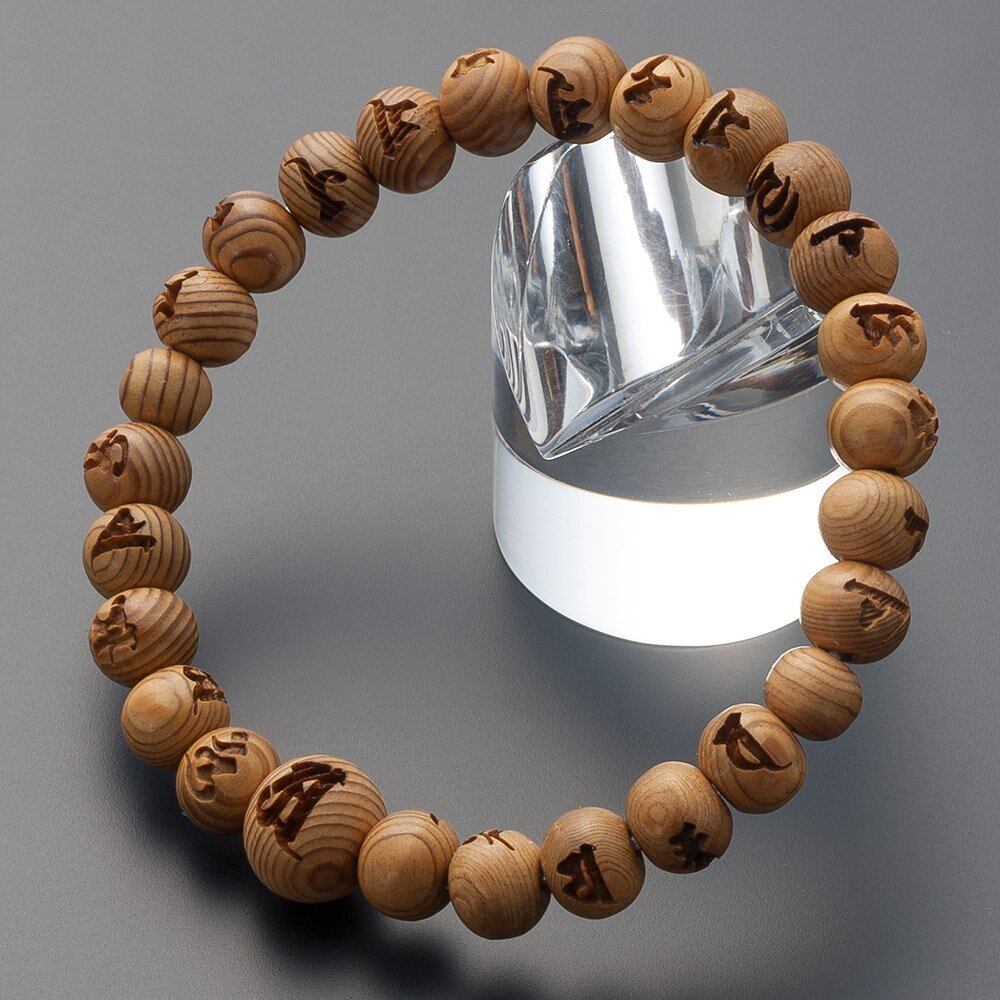 仏壇屋 滝田商店 特選 腕輪念珠 木玉ブレスレット 光明真言彫入り 屋久杉 8mm玉(尺二玉)◆ 最強の厄除け 梵字 数珠 ブレスレット・数珠ブレス・四国 お遍路 お守り 【滝田商店発行 証明書付】