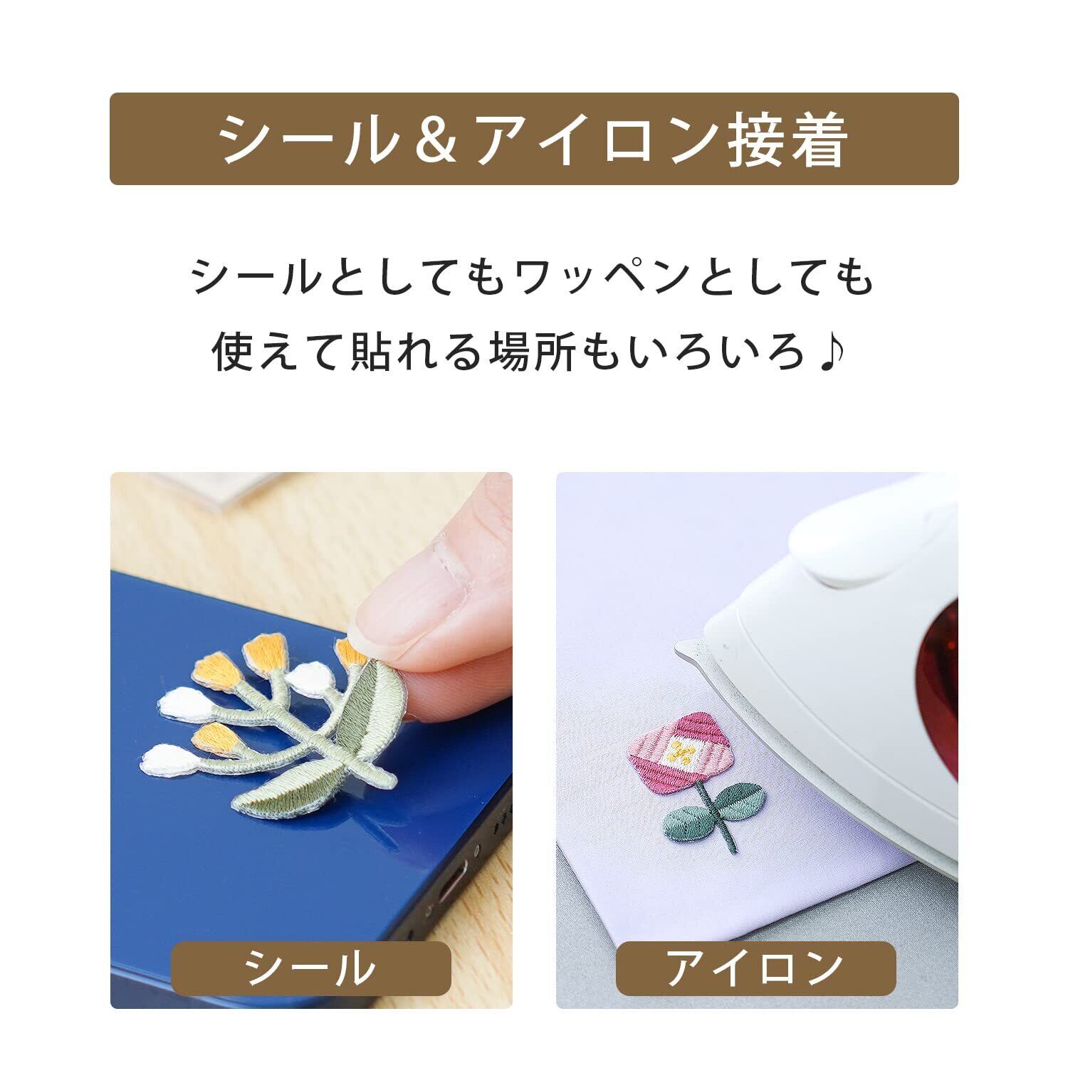 【新春セール】原ウール シール&アイロンワッペン レトロフラワー 刺しゅうワッペン アップリケ 日本製 花 5.H10805