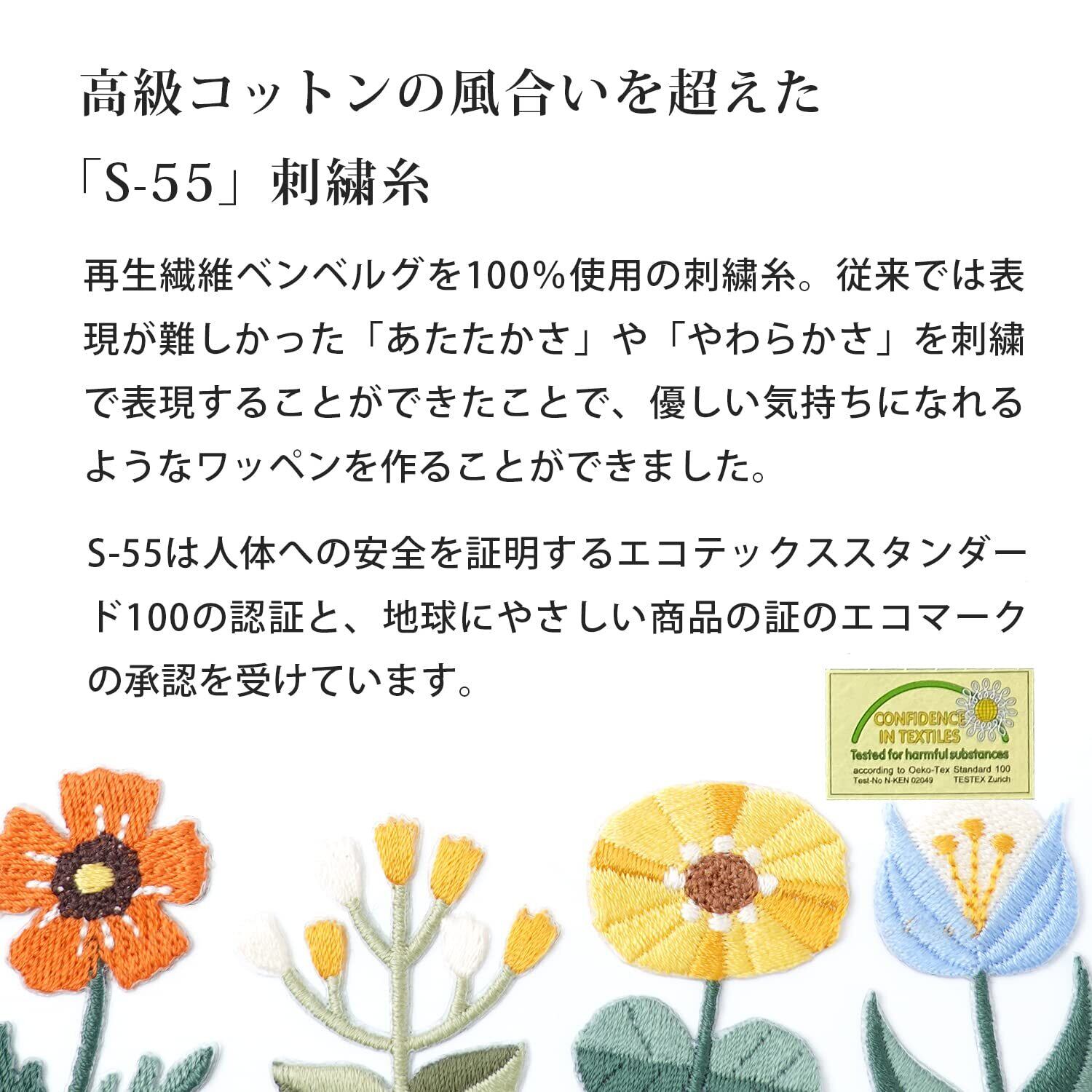 エコ素材S-55刺繍糸を使った鮮やかな色と上品な光沢のシール&アイロン接着レトロフラワーワッペン