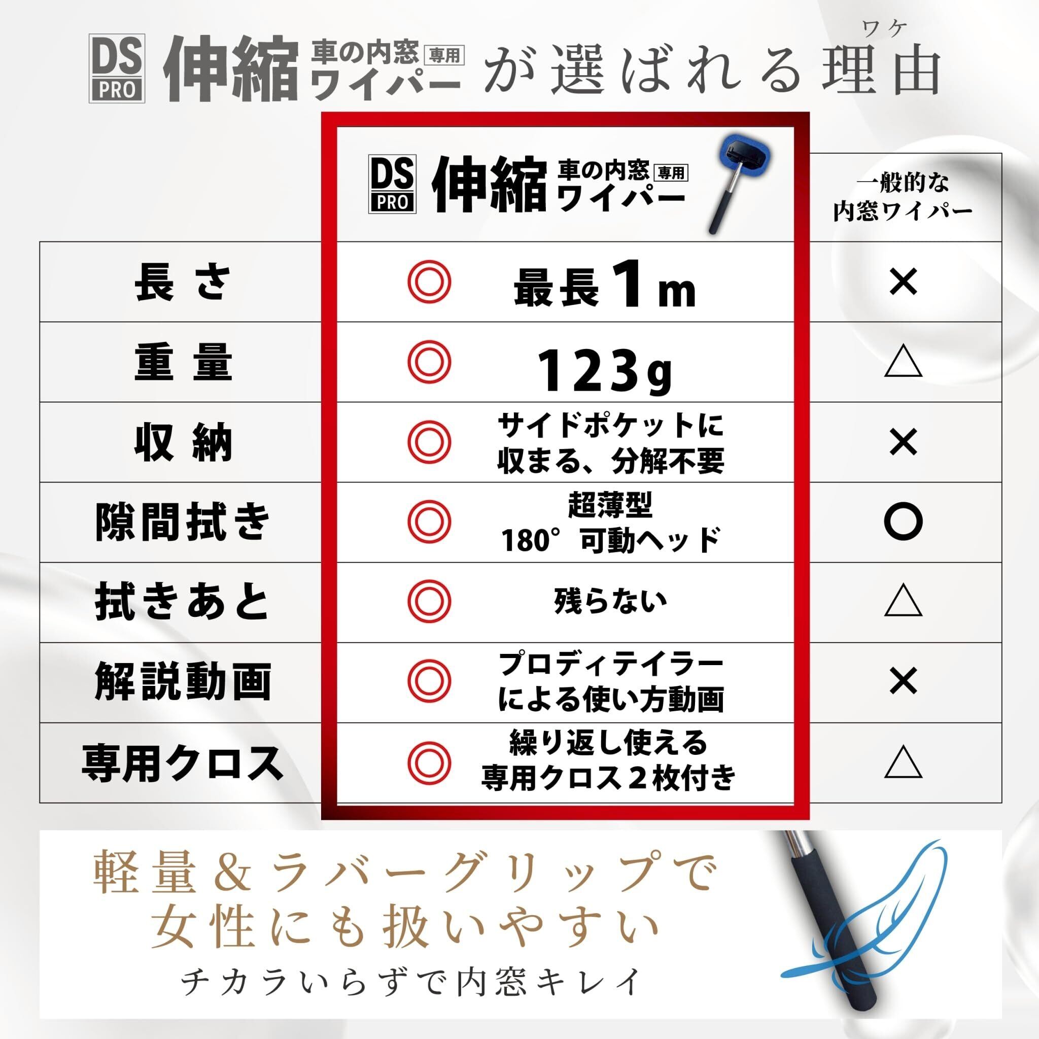 【2022最新】車 窓拭き 【これであなたも窓拭き達人 プロ専門家解説動画付】最長1m伸縮 超薄型 内窓拭き カー用品 車用品 洗車用品 ガラスクリーナー 用品 車内清掃 掃除 内側 スクイージー付