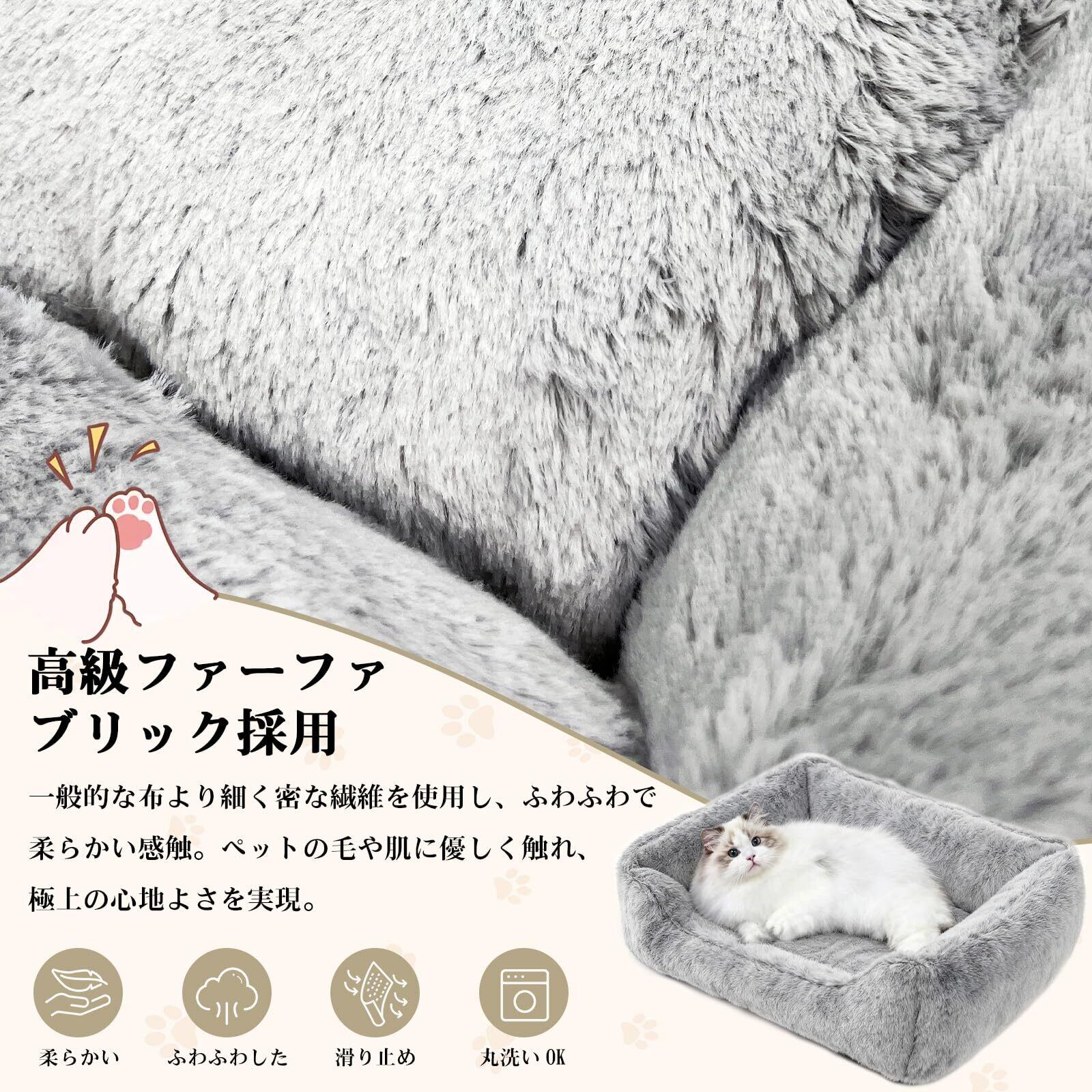 【ふわふわ仿兎毛素材で極上のやわらかさ】仿兎毛を使用したふわふわの表面は、まるで抱きしめられるような柔らかさ。ペットがリラックスしてぐっすり眠れる快適な寝心地を提供します。