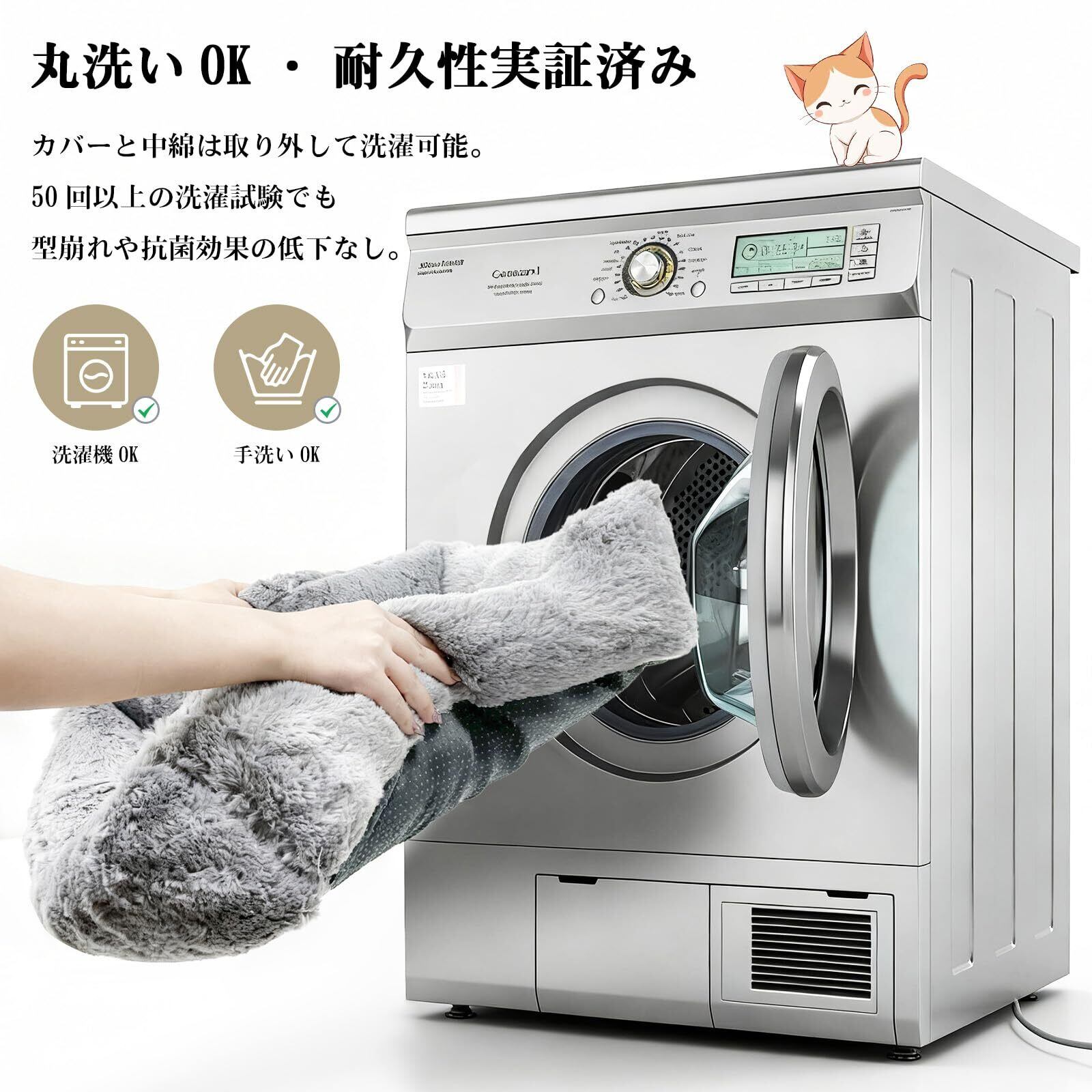 【取り外し可能クッション&洗濯ネット対応】クッションは取り外し可能で、洗濯ネットに入れて洗濯機で丸洗いできます。常に清潔に保てるので、お手入れが簡単で安心です。