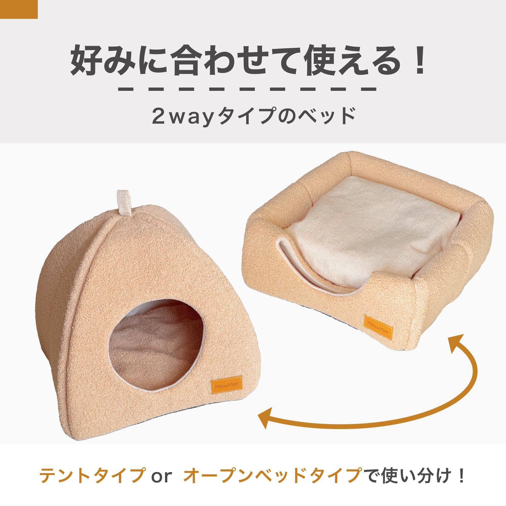 MeowMate 猫のベッド テントタイプ クッション付き ボア素材 ベージュ ドーム型 2WAY キャット 猫用ハウス 隠れ家 かわいい