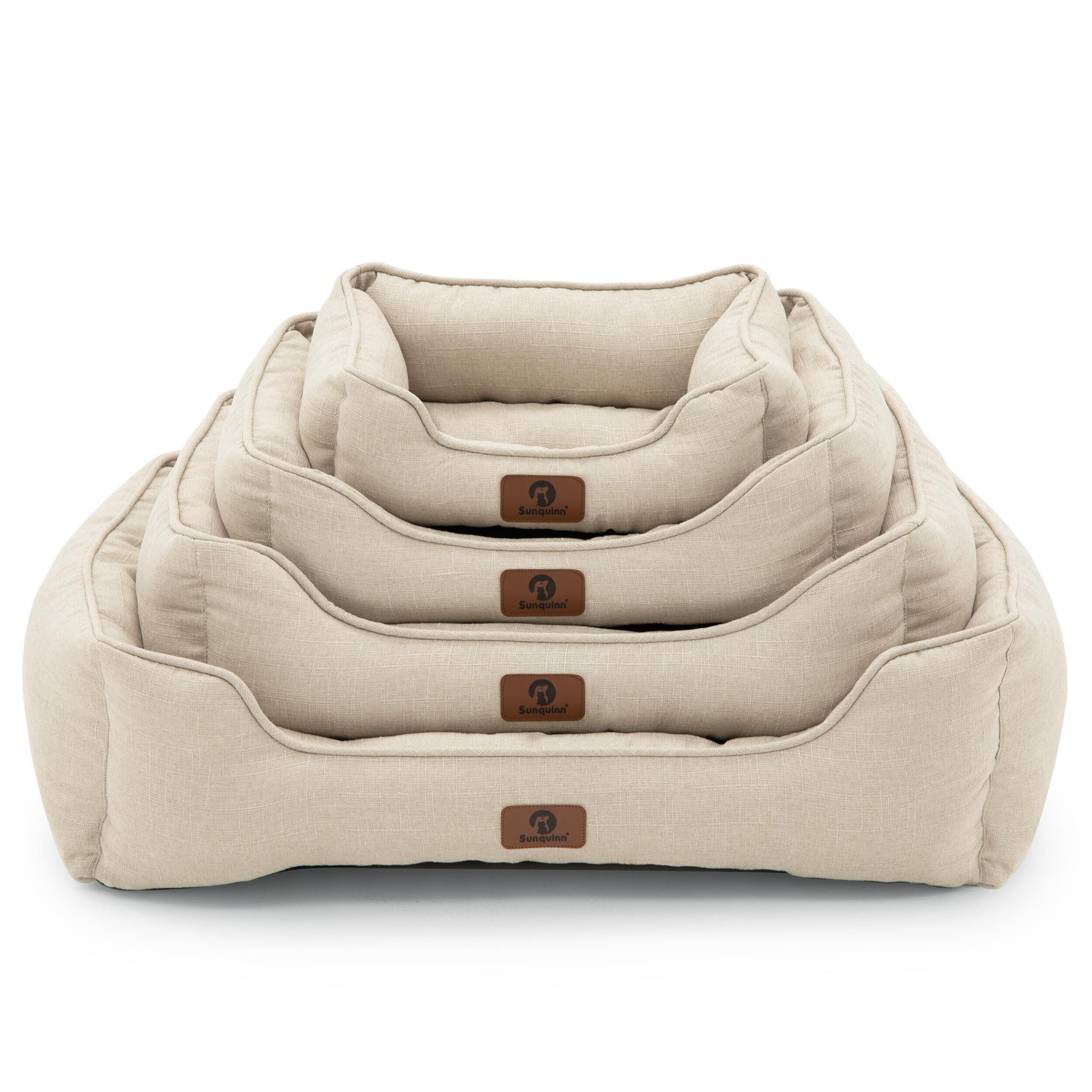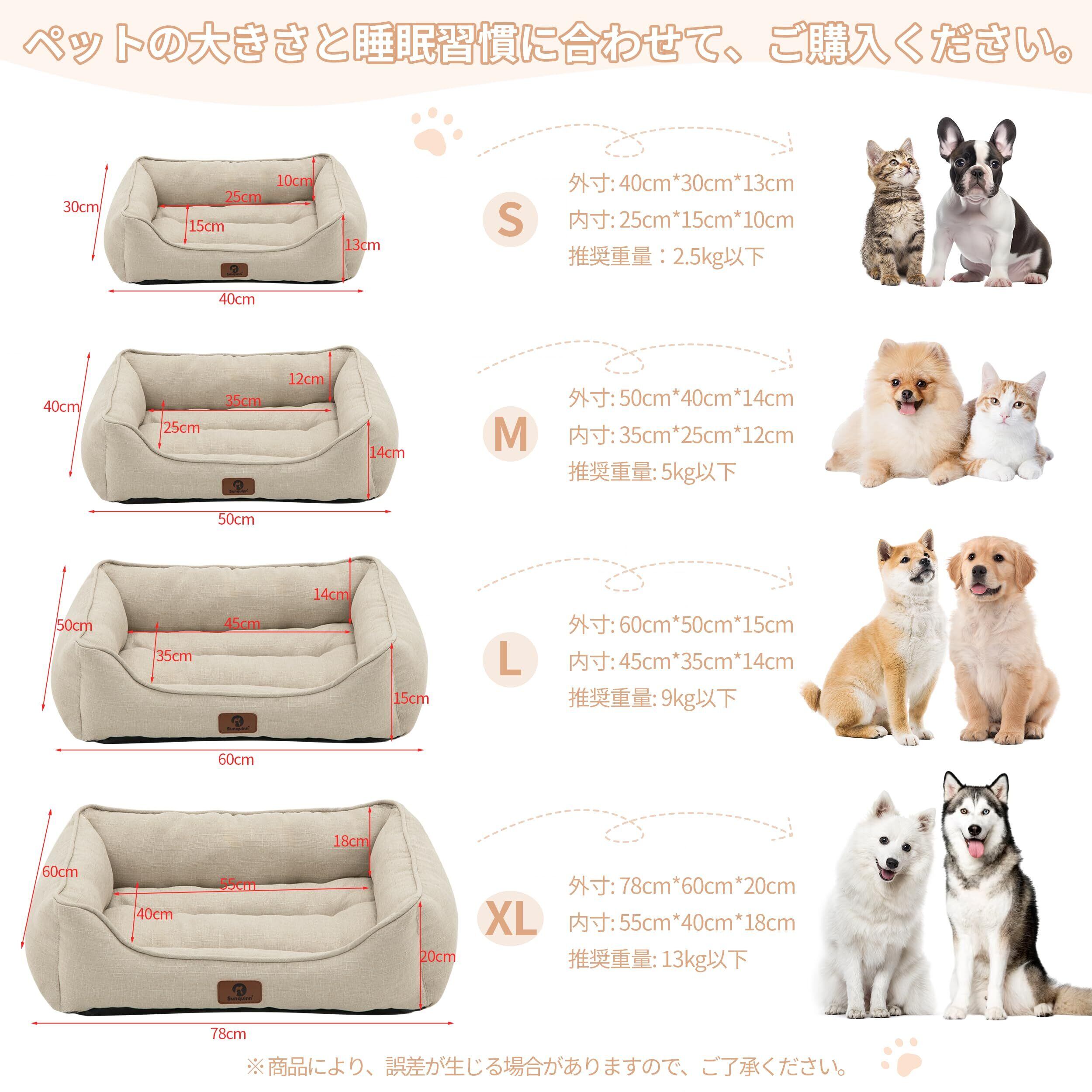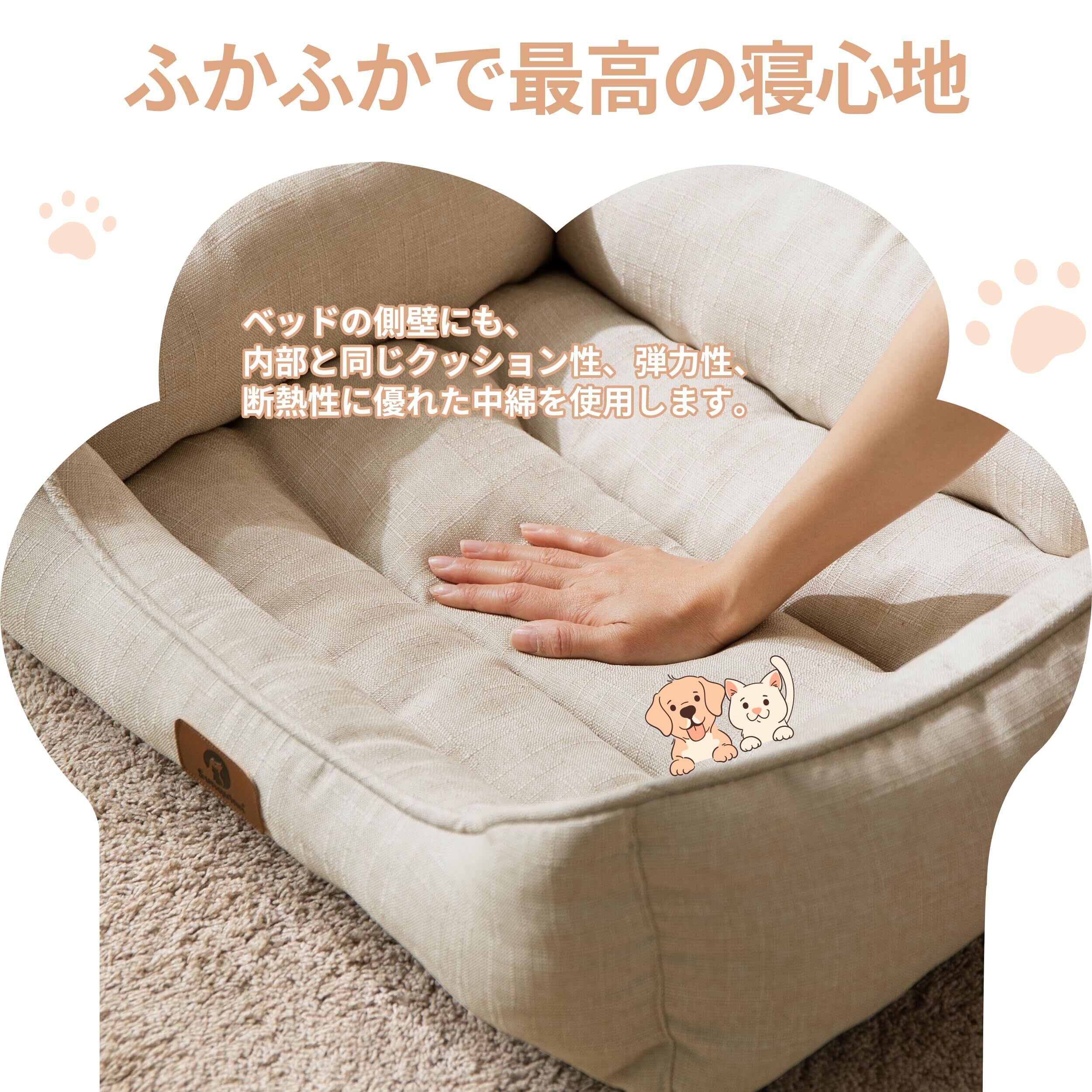 猫 犬 ベッド 猫ベッド 犬用 ペットベッド 洗える 滑り止め 通気性 オールシーズン クッション スクエア型(外寸50Lx40Wx14Hcm ベージュ)
