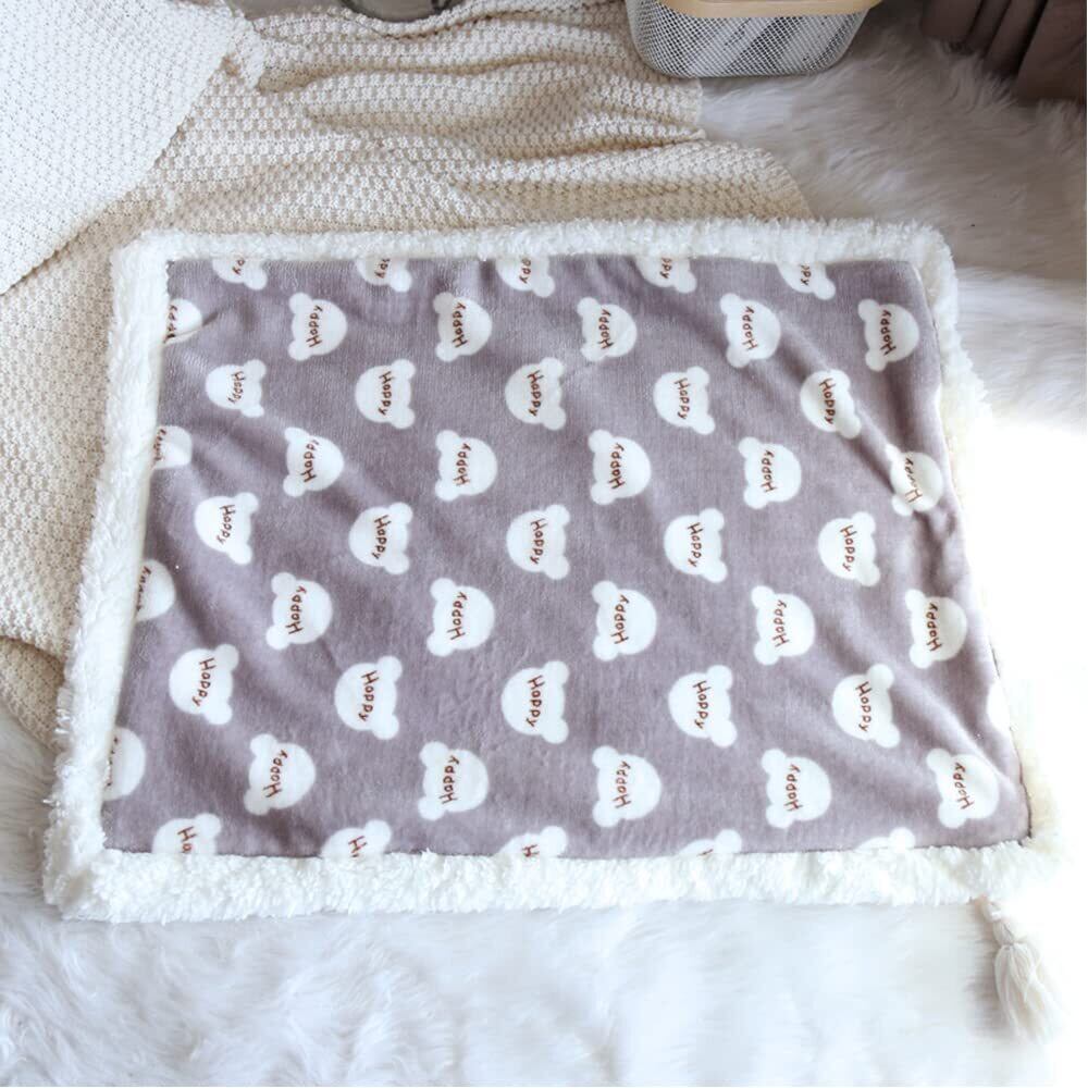 ペット用 ブランケット 毛布 犬猫用 -HIMATI タオル マット 暖かい ふわふわ 防寒 保温 洗える 可愛い柄 四季適用 ベッドカバー -Gray-S