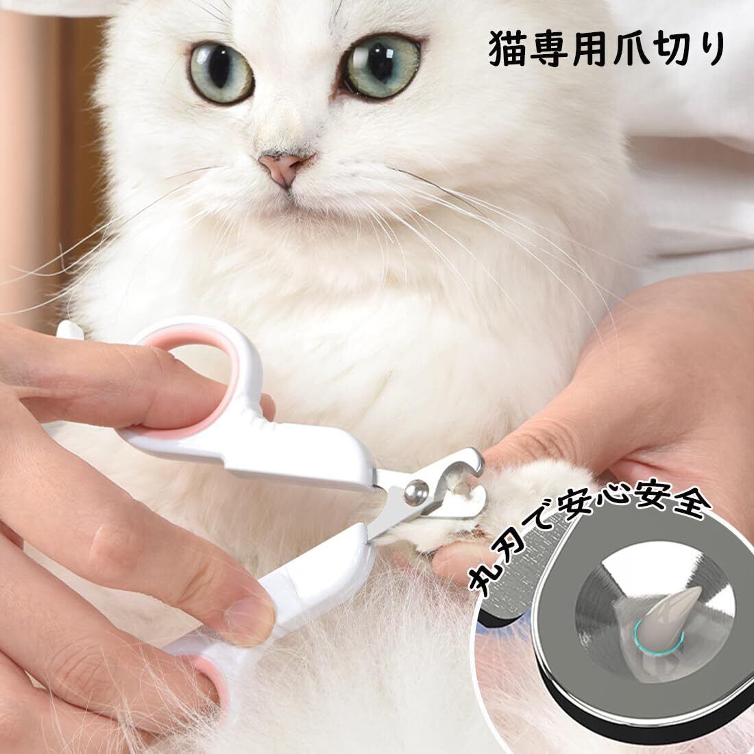 ペット用爪切り 猫用爪切り 丸穴 切り過ぎ防止 初心者用 ネコ 小型犬 うさぎ 丸型刃 Q型ハンドル 握りやすい 滑り止めゴム付き 軽量 簡単 (ピンク)