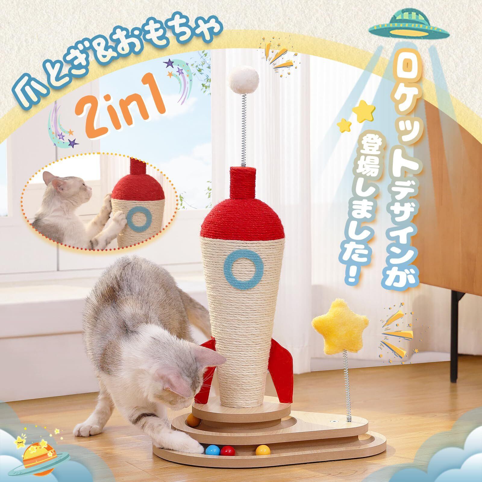 【猫が喜ぶ機能満載】ロケットデザイン!天然サイザル麻紐爪とぎポール・玩具付きなど、たくさんのポイントが詰め込まれています!