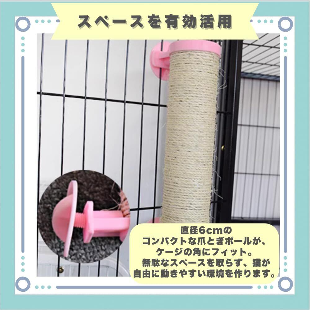 【スペースを有効活用】直径6cmのコンパクトな爪とぎポールが、ケージの角にフィット。無駄なスペースを取らず、猫が自由に動きやすい環境を作ります。