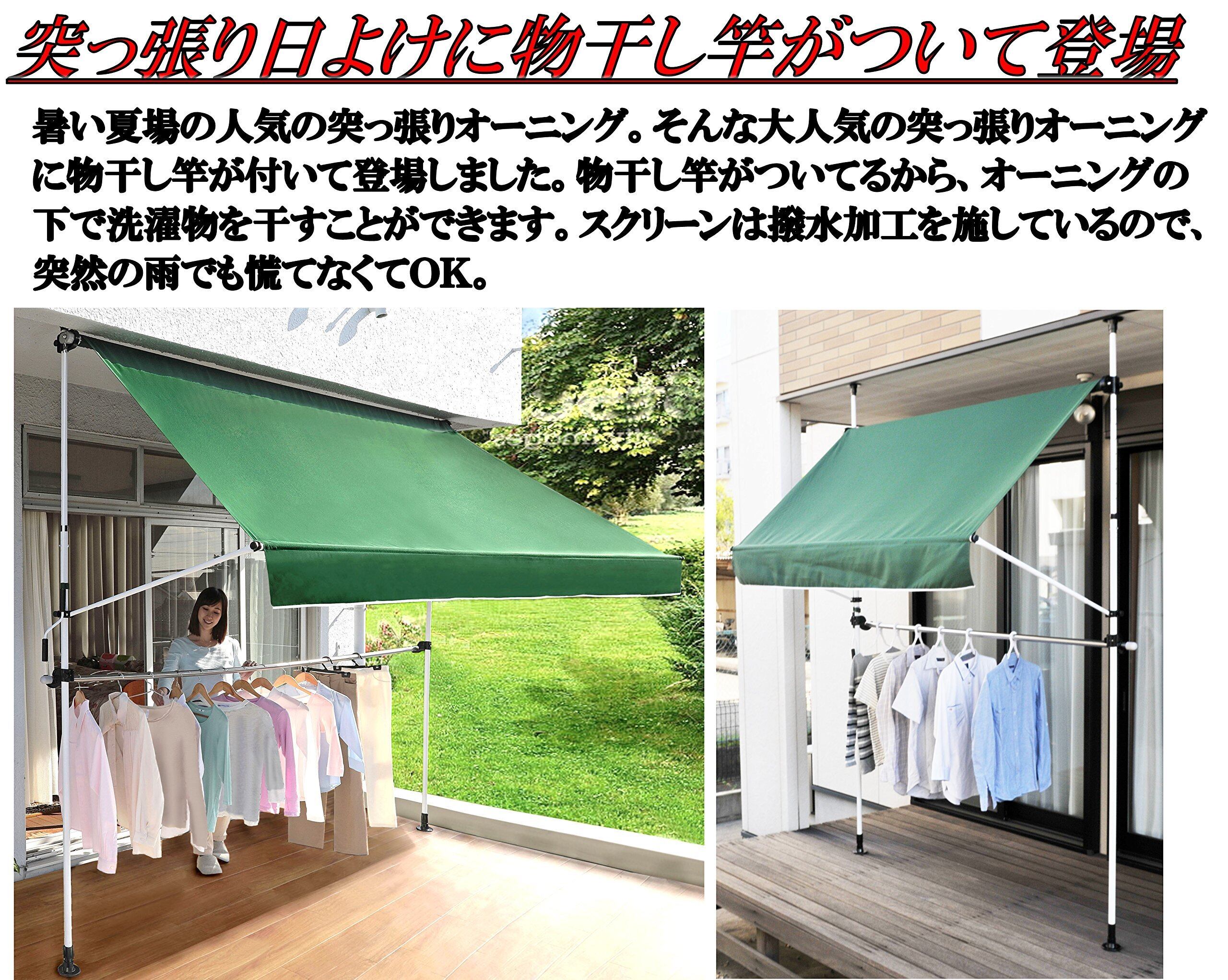 ●人気の突っ張り日除けオーニングに便利な物干し竿がついて登場