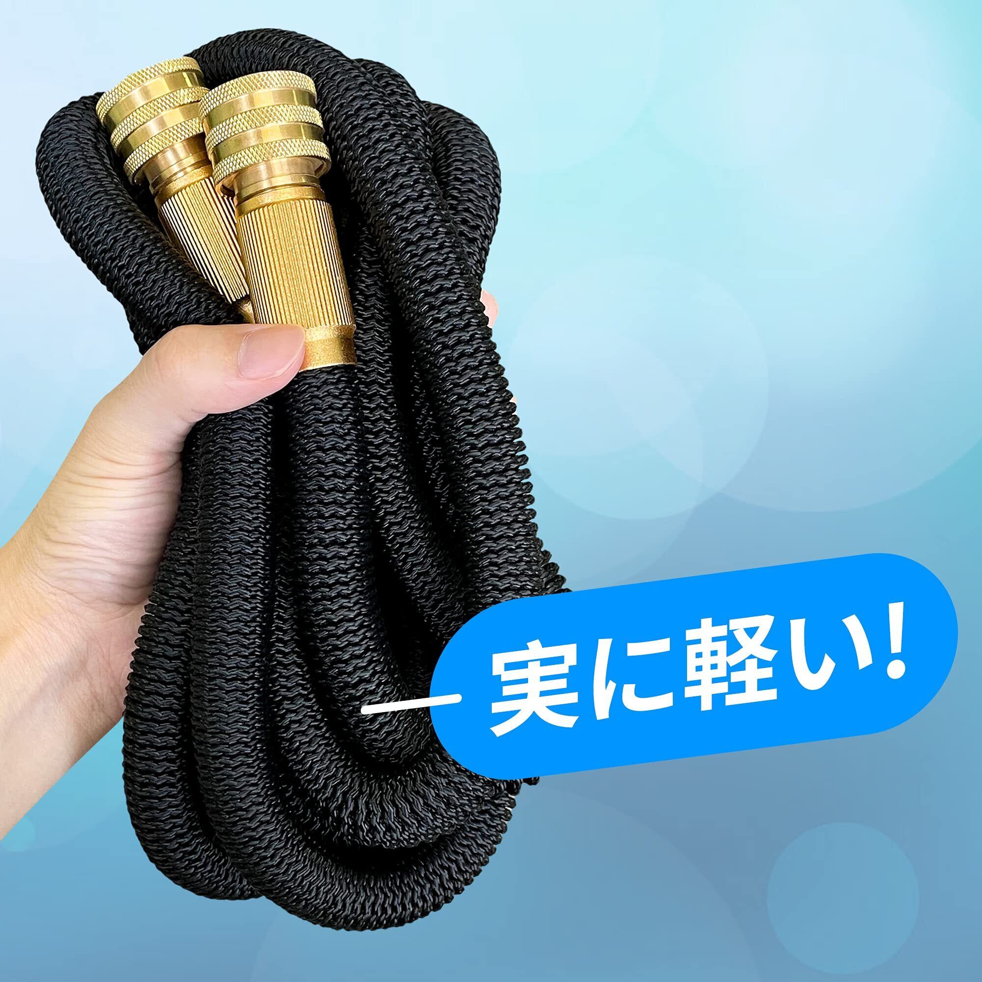 【より高い耐久性】ホースのインナーチューブは業界で厚い3層ラテックス素材を利用し、一般の伸縮ホースより耐久性が高いです。また、インナーチューブの表面にナノコーティングが施されていますので、長くご使用いただけます。