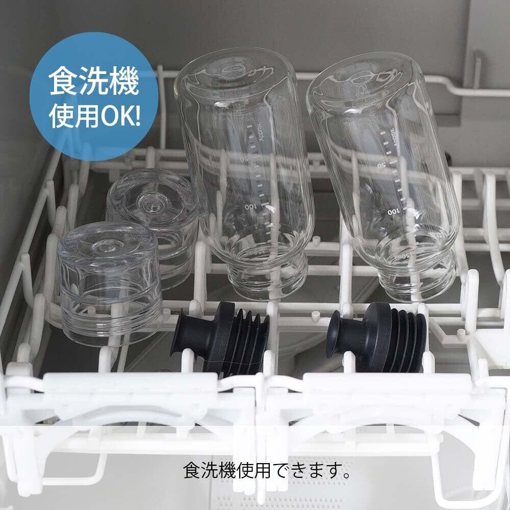 【商品詳細】本体サイズ:幅5.5×奥行5.5×高さ14.0・口径3.7cm、本体重量:約177g、実用容量:150mL、本体材質:本体/耐熱ガラス・フタ/PCT樹脂・注ぎ口/シリコーンゴム